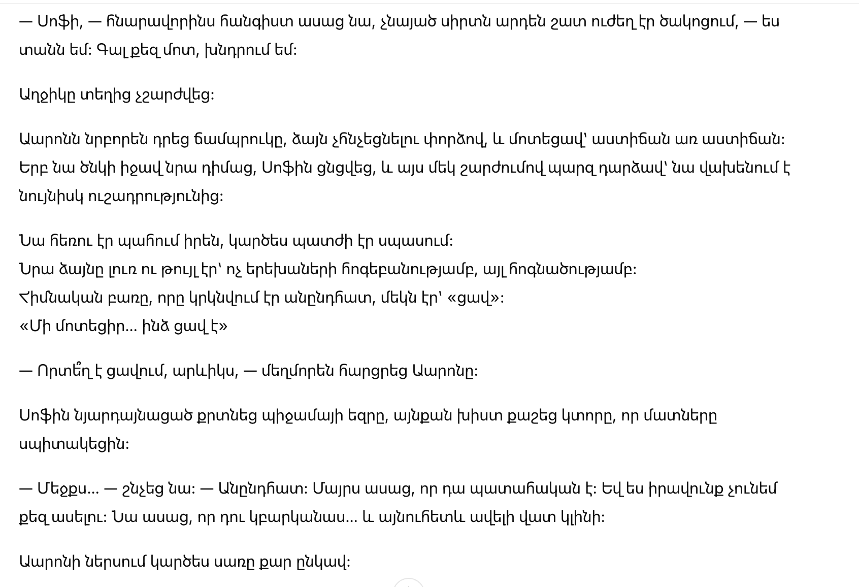 Софи быстро взглянула в коридор, словно проверяя, нет ли там кого-то ещё. Её дыхание стало коротким, прерывистым. Она собиралась с силами так долго, что Аарон даже не посмел торопить.