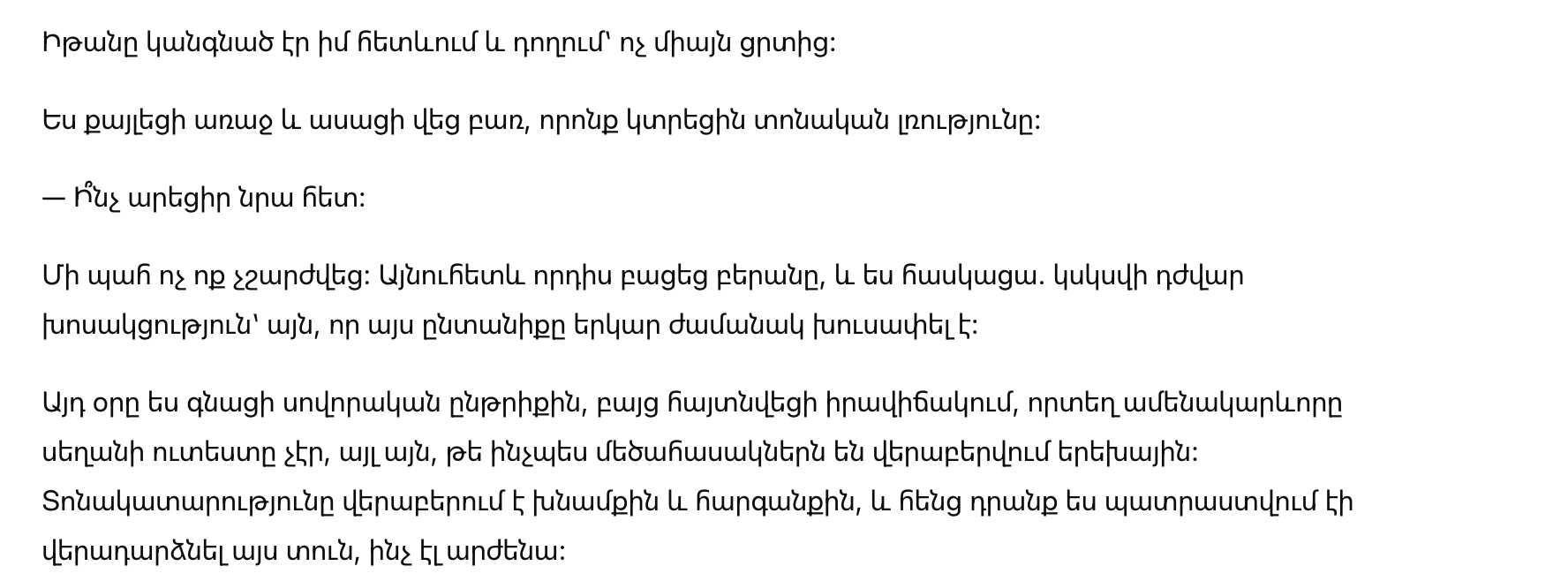 — Она сказала, что это слишком… но он на неё тоже накричал. И она перестала спорить.