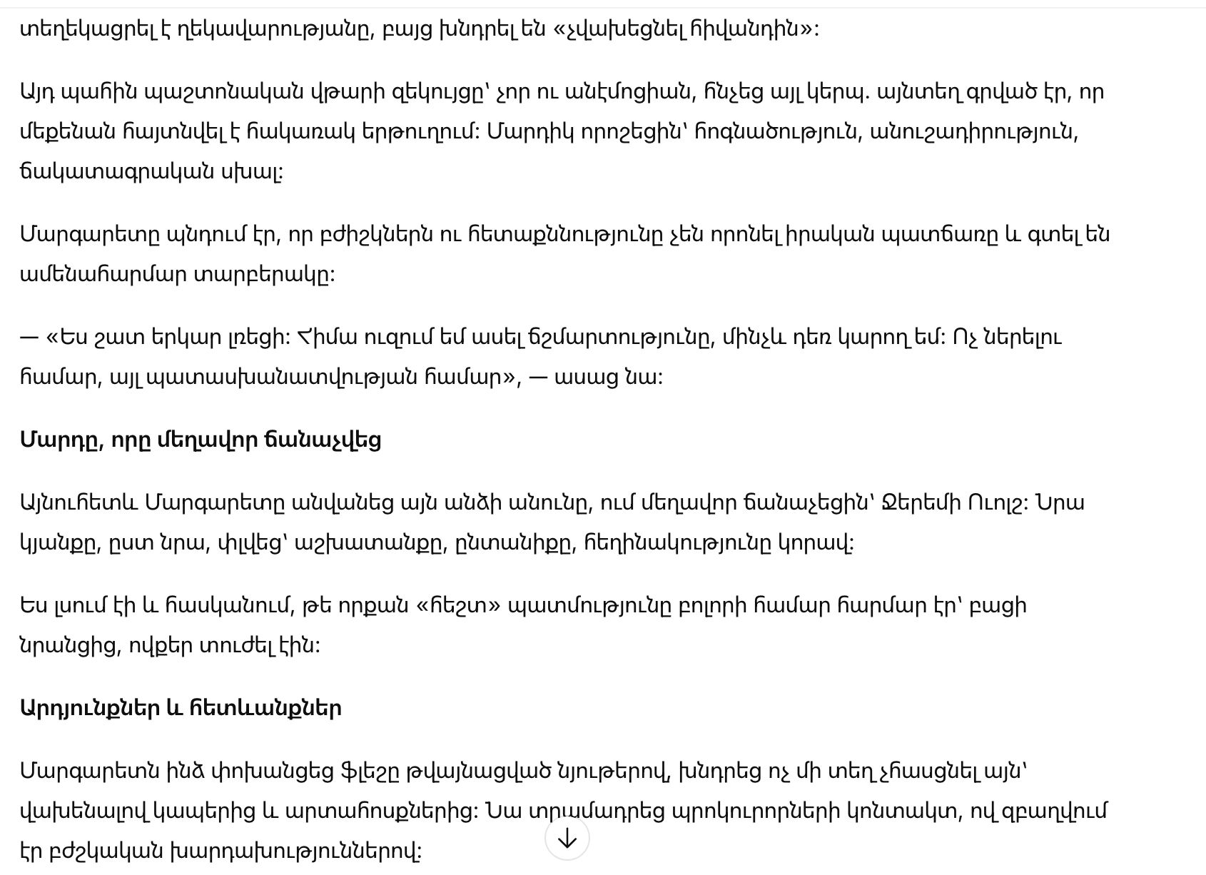 Маргарет настаивала: дело могло быть в том, что врачи и расследование не искали истинную причину — и потому нашли самую удобную.