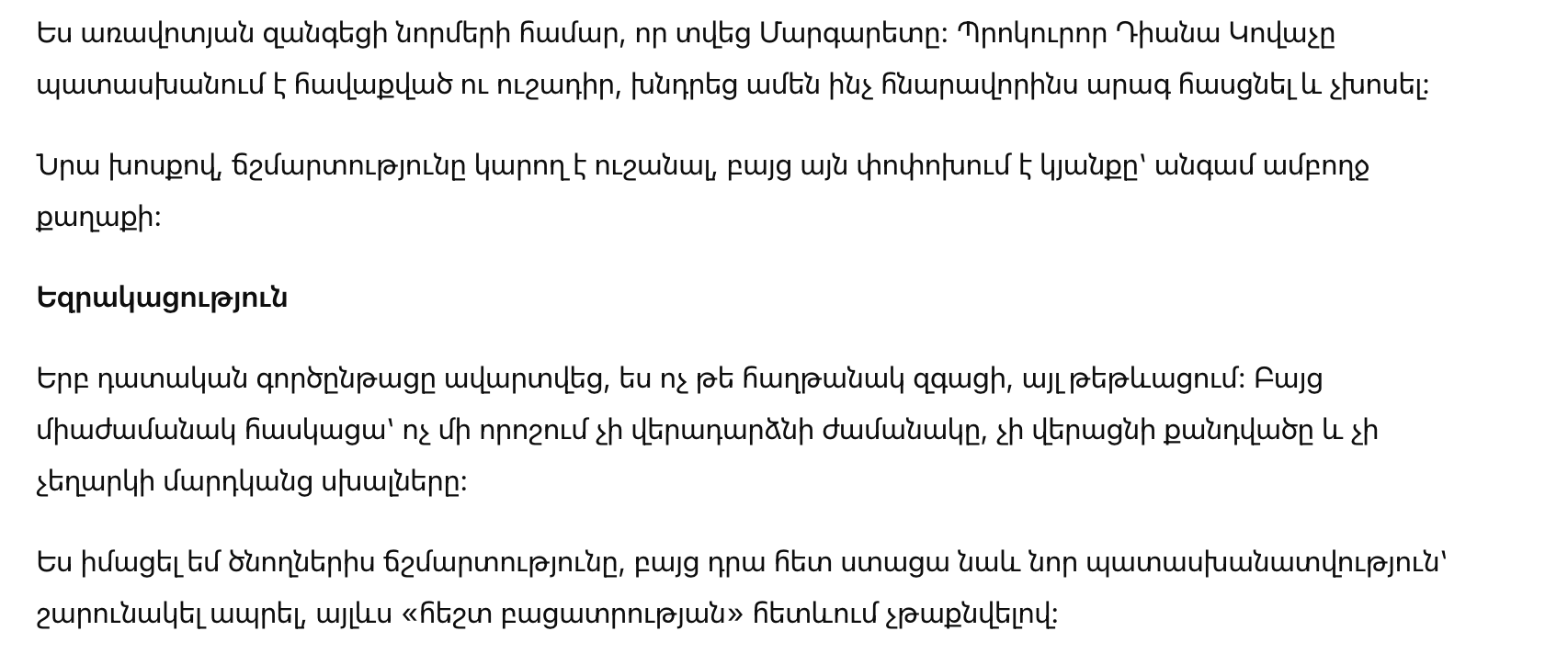 «Я слишком долго молчала. Сейчас я хочу сказать правду, пока еще могу. Не ради прощения — ради ответственности», — сказала она.