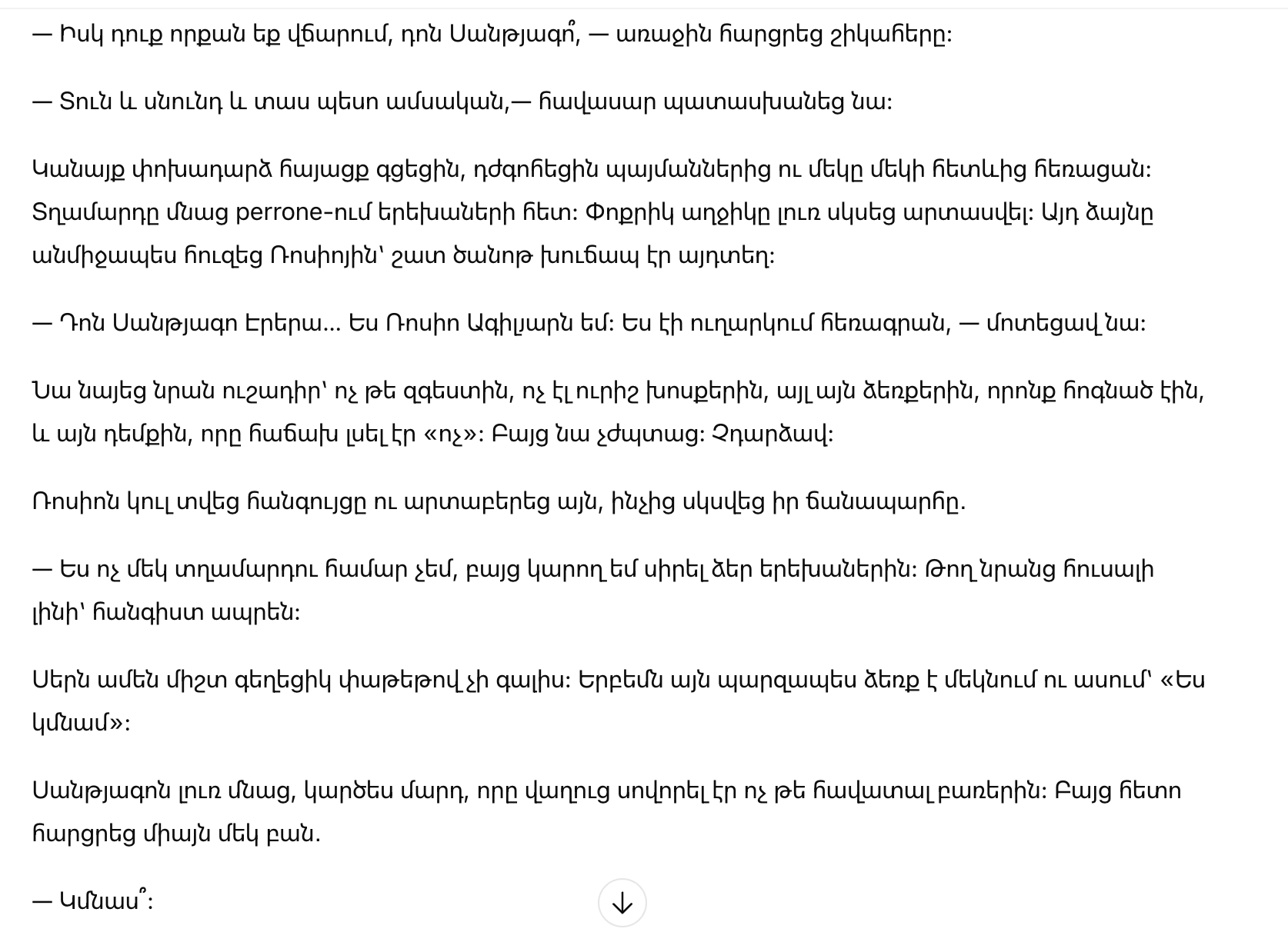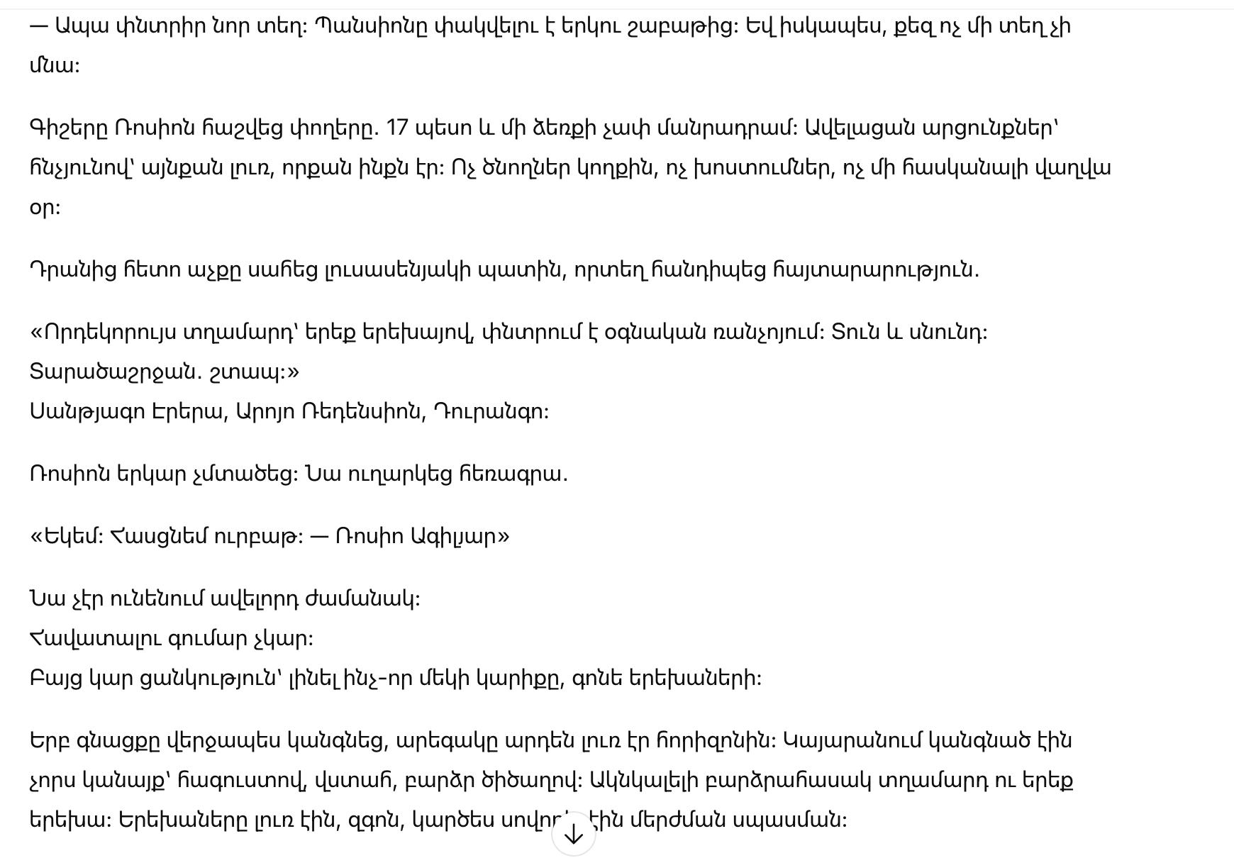 Женщины переглянулись, начали возмущаться условиями и одна за другой ушли. Мужчина остался на перроне с детьми. Самая маленькая девочка тихо заплакала. Этот звук будто задел Росио за живое — слишком знакомая была в нём растерянность.