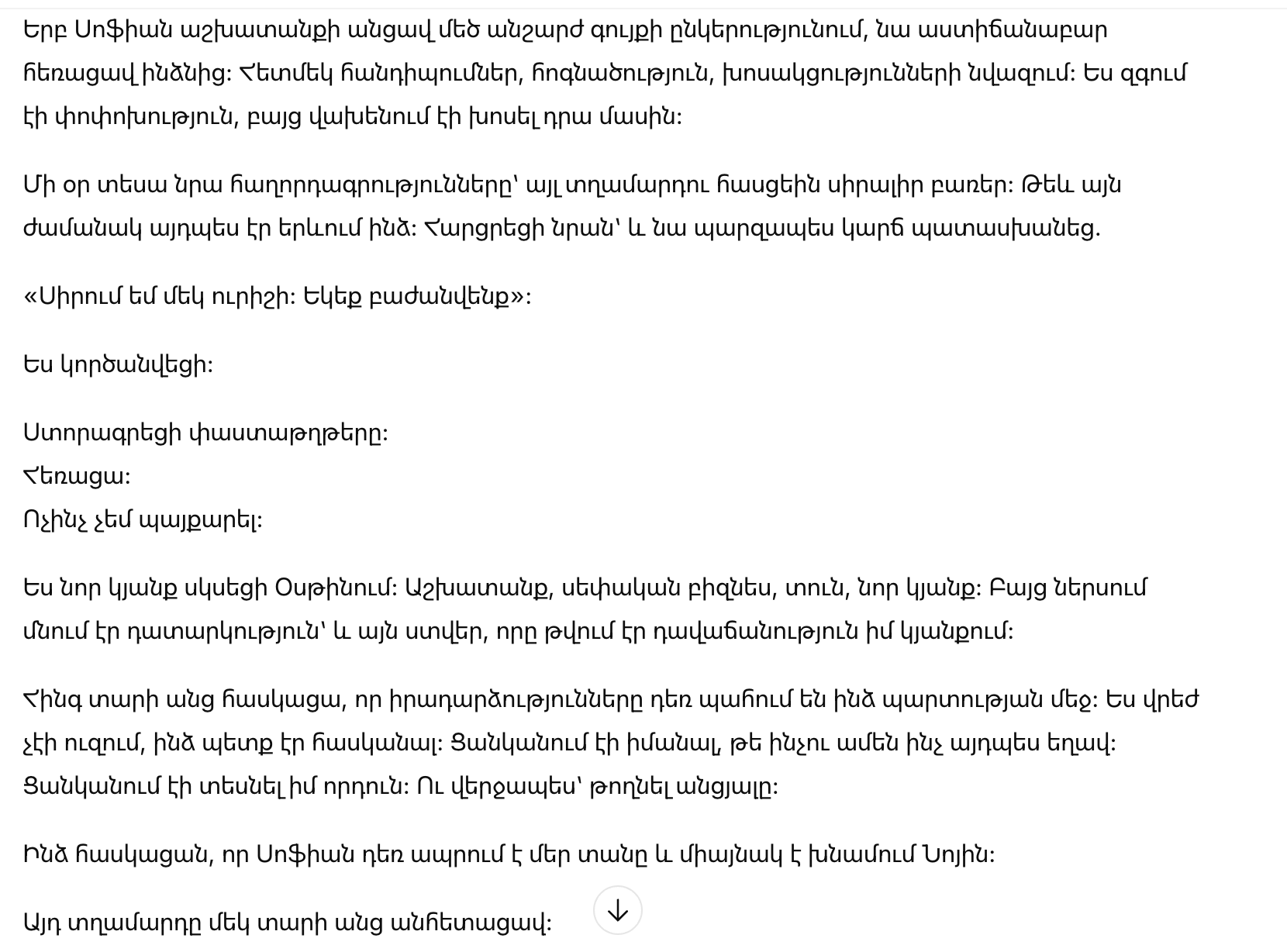Когда София устроилась на работу в крупную риэлторскую компанию, она постепенно начала отдаляться от меня. Поздние встречи, усталость, все меньше разговоров. Я чувствовал, что что-то меняется, но боялся об этом говорить.