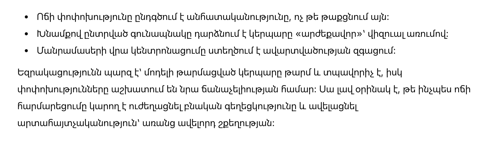 • Смена стиля подчёркивает индивидуальность, а не маскирует её.
