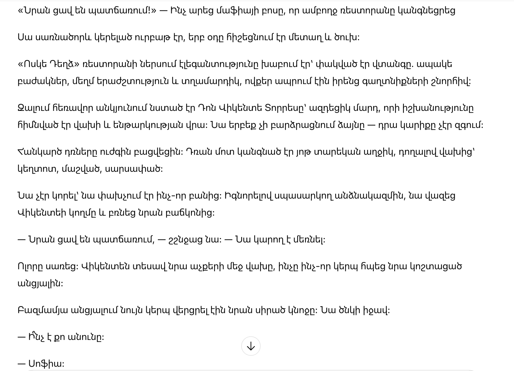 Весь зал замер. Викенте увидел панику в ее глазах, что-то мягкое задело его закаленное прошлое.