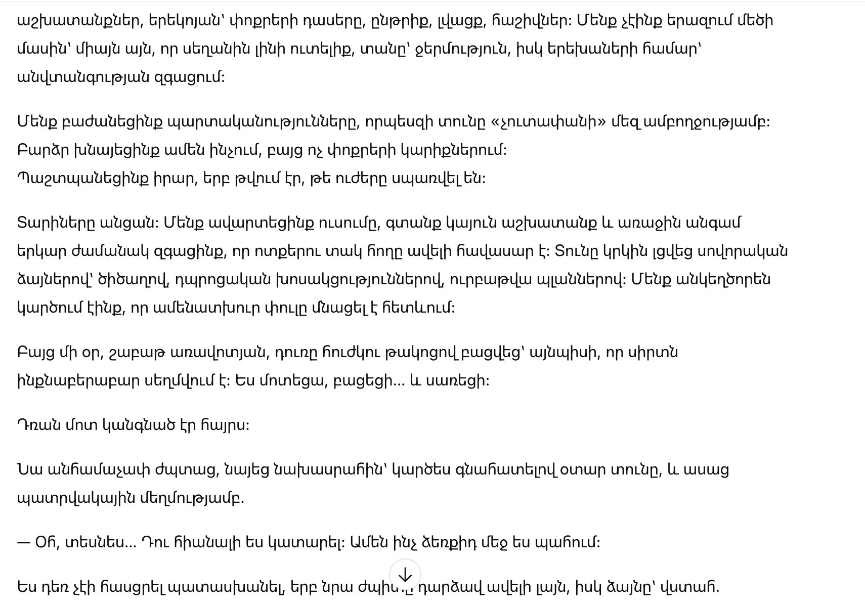Мы учились и одновременно работали. Днём — пары и подработки, вечером — уроки младших, ужин, стирка, счета. Мы не мечтали о большом: лишь бы на столе была еда, в доме — тепло, а у детей — ощущение безопасности.