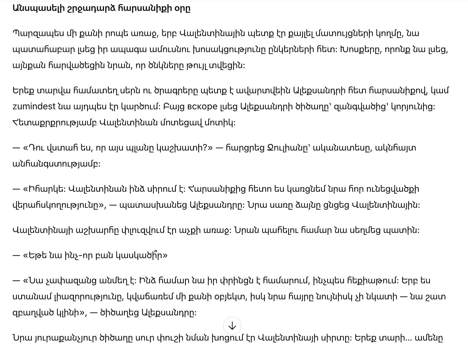 Три года совместной любви и общих планов должны были завершиться свадьбой Александра, или так она считала. Но вскоре она услышала смех Александра, доносящийся из коридора. Заинтригованная, Валентина осторожно подошла ближе.