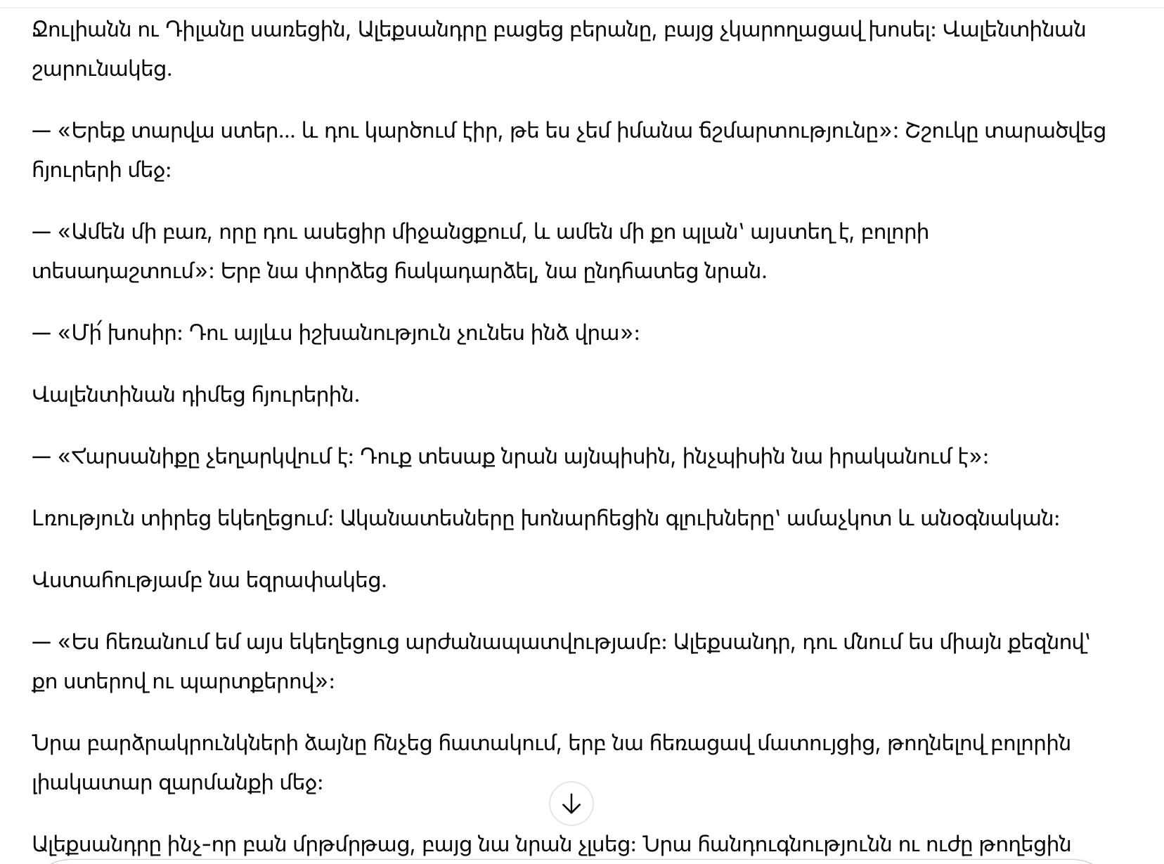 Гости обернулись к ней с удивлением, пока она медленно шла к алтарю, её взгляд был прикован к Александру.