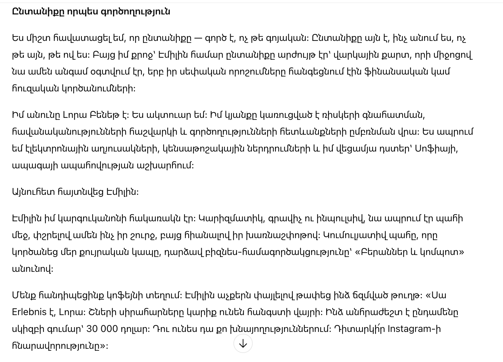 Я всегда считала, что семья — это действие, а не существительное. Семья — это то, что ты делаешь, а не кто ты есть. Но для моей сестры Эмили семья была валютой — кредитной картой, которой она пользовалась всякий раз, когда её собственные решения приводили к финансовым или эмоциональным катастрофам.