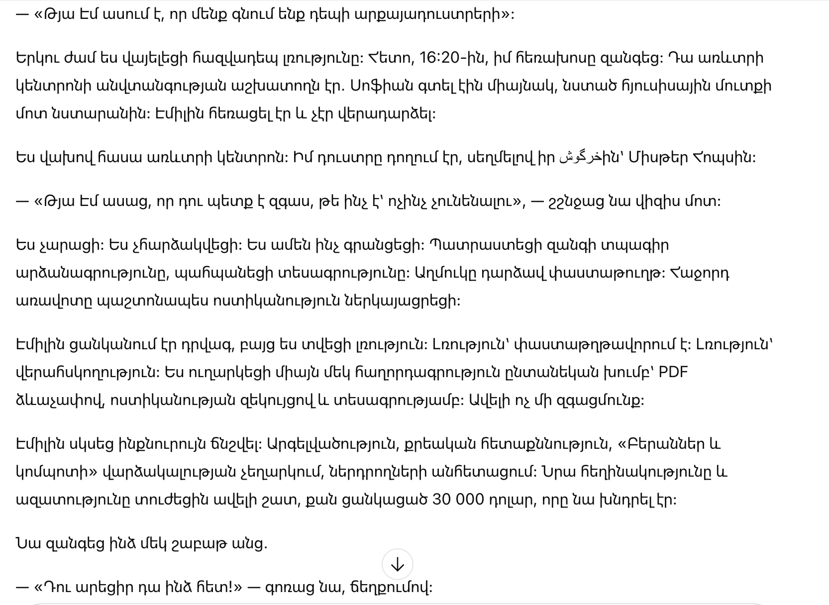 Эмили хотела драму, но я дала тишину. Тишина — это документирование. Тишина — это контроль. Я отправила только одно сообщение в семейный чат — PDF с полицейским отчетом и видеозаписью. Больше никаких эмоций.