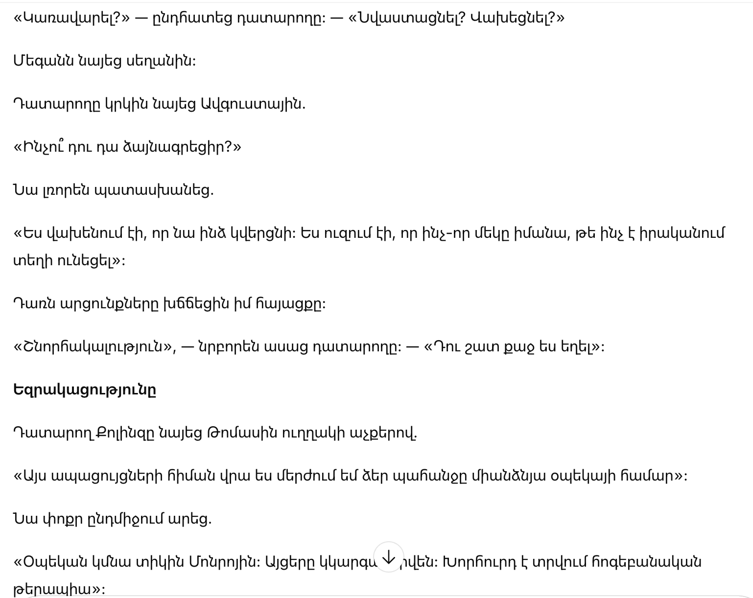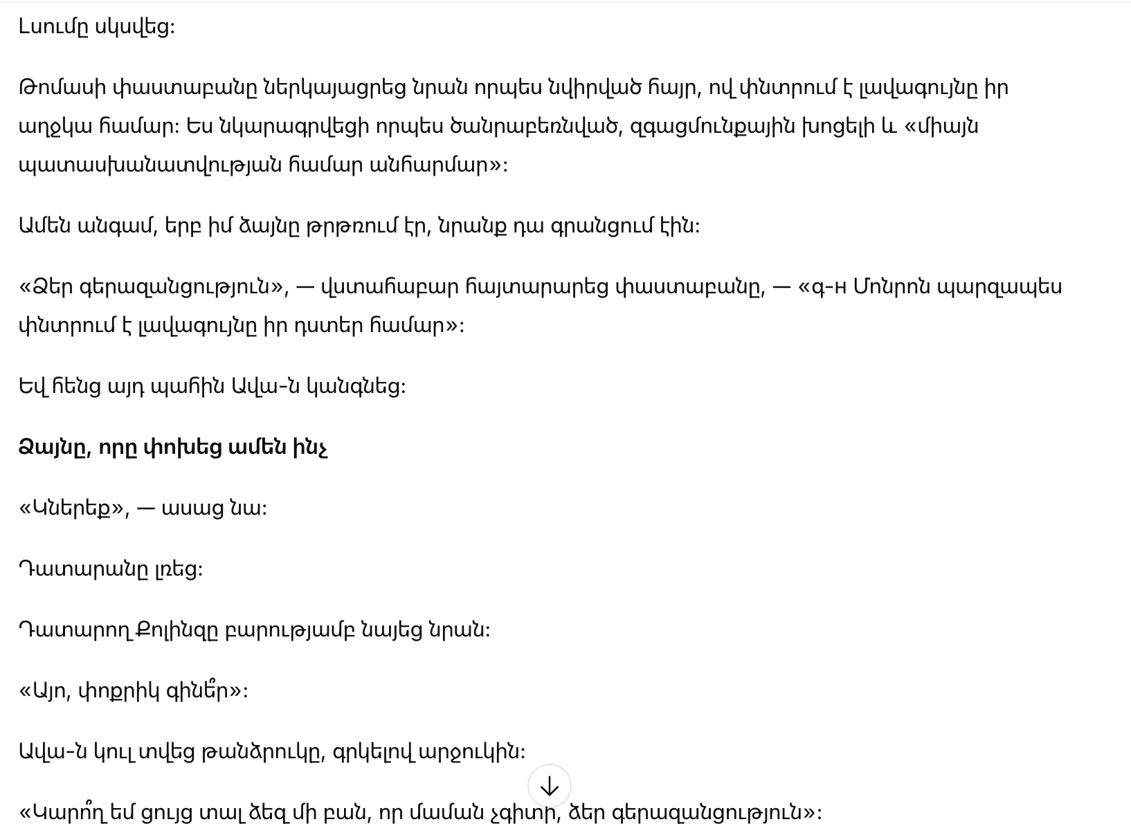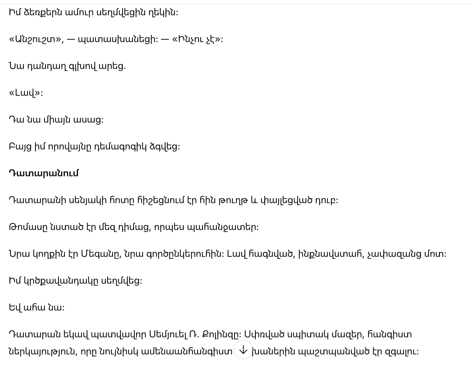 «Спасибо», — ласково сказал судья. — «Ты была очень смелой».