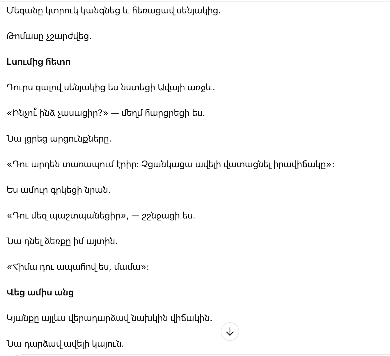 На мгновение слова не дошли до моего сознания. Они повисли в воздухе, как незнакомый язык, который я не могла понять.