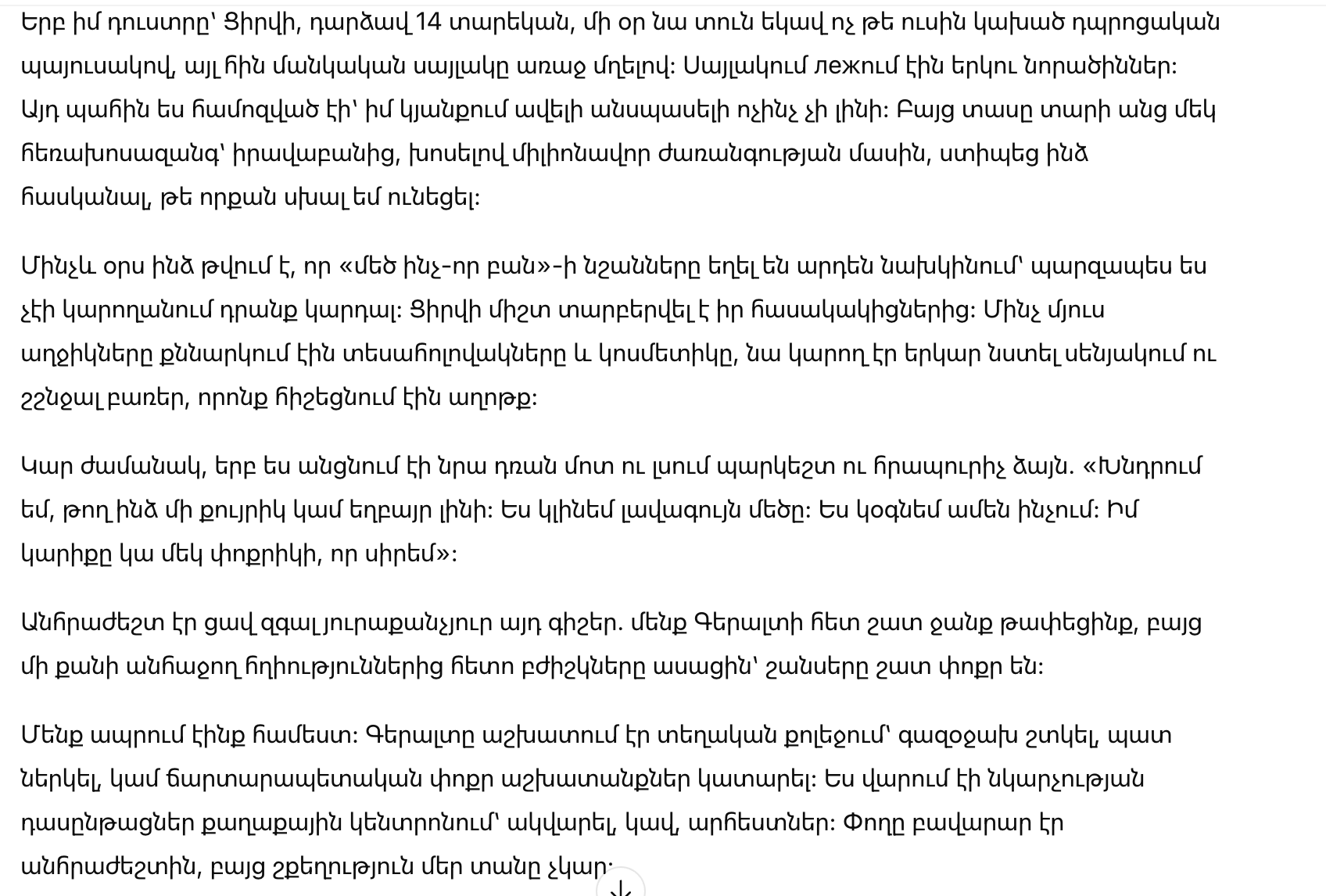 Если честно, теперь мне кажется, что признаки «чего-то большого» были и раньше — просто я не умела их читать. Цири всегда отличалась от ровесников. Пока другие девочки обсуждали клипы и косметику, она могла подолгу сидеть в комнате и шептать слова, похожие на молитву.