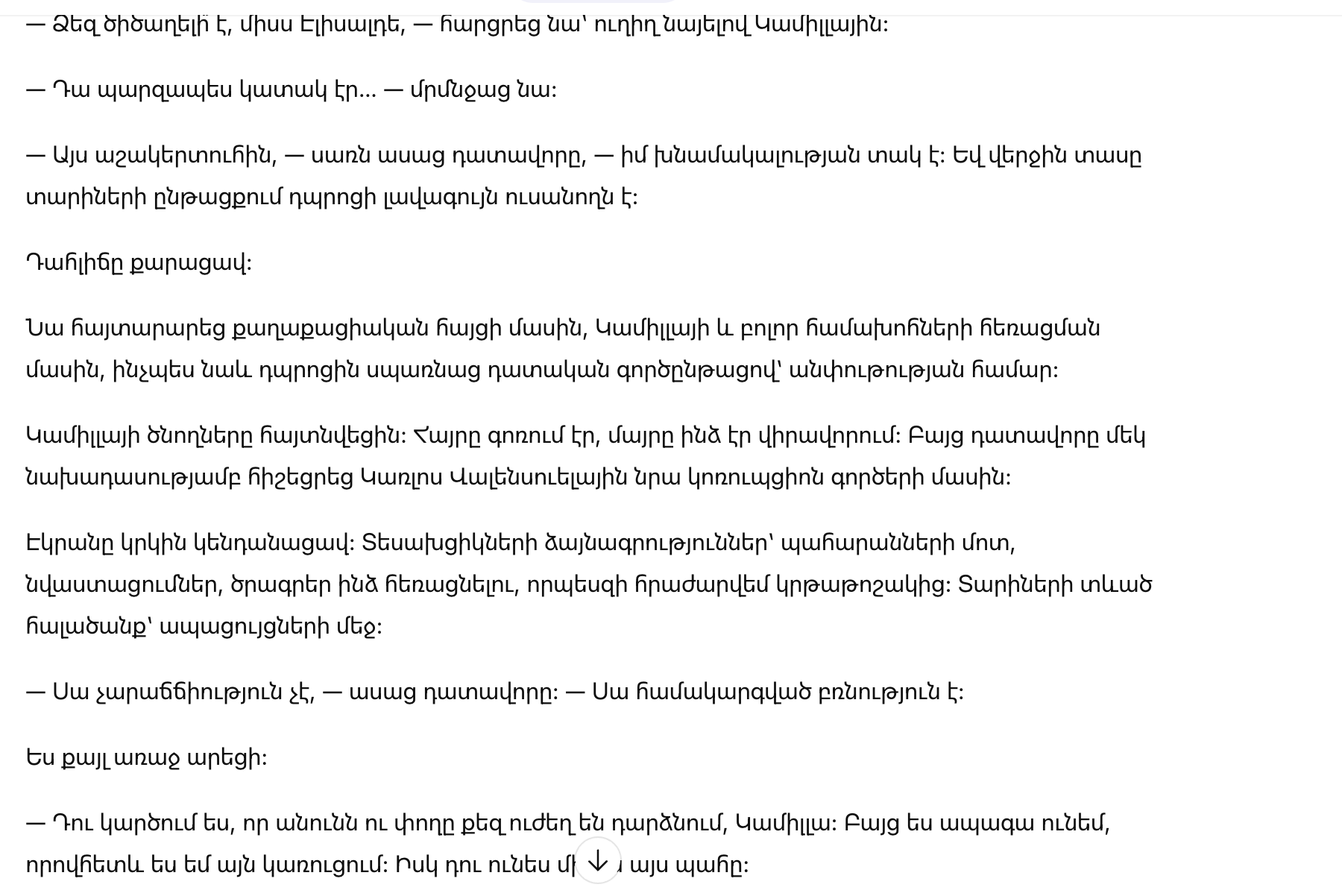 Одобрительный шум прошел среди подруг Камиллы. “Отряд” начал сплочаться. Директор кивнул, пытаясь найти способ из этой шумной ситуации, которая могла развалить репутацию школы.