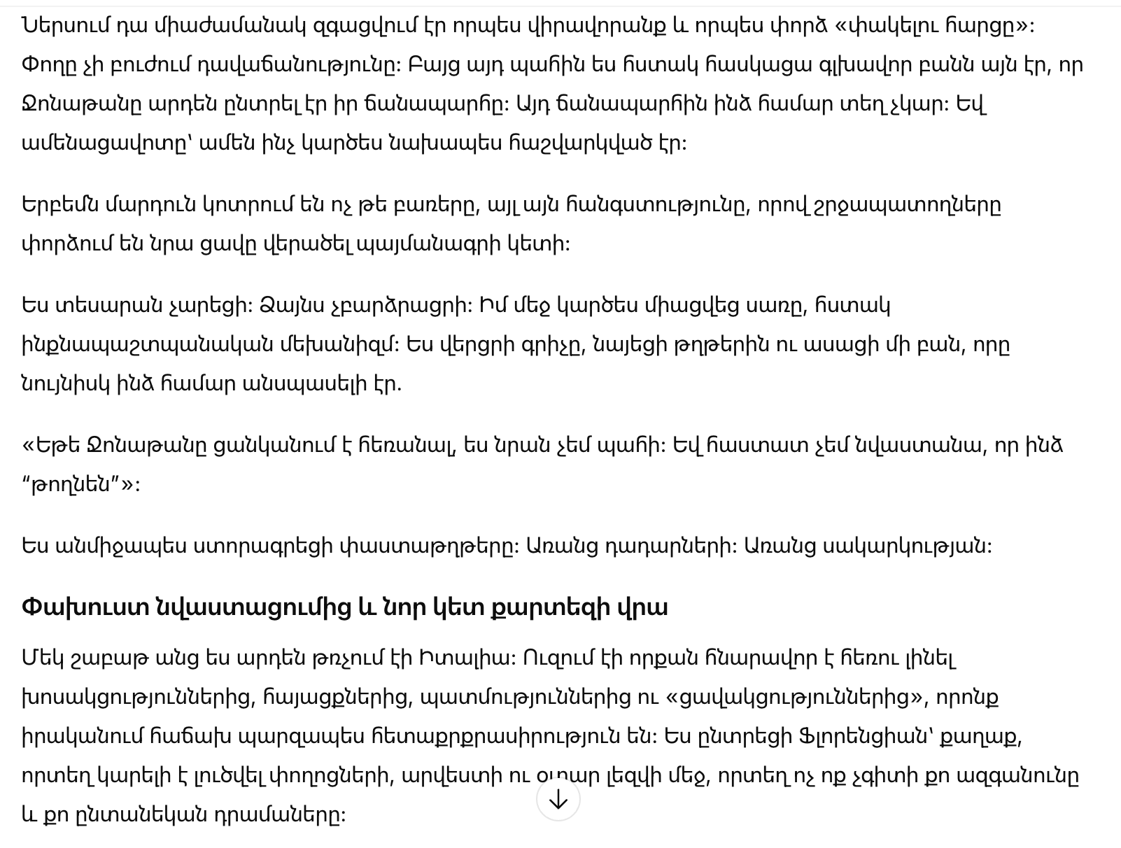 «Если Джонатан хочет уйти — я не стану его удерживать. И уж точно не буду унижаться, чтобы меня “оставили”.»
