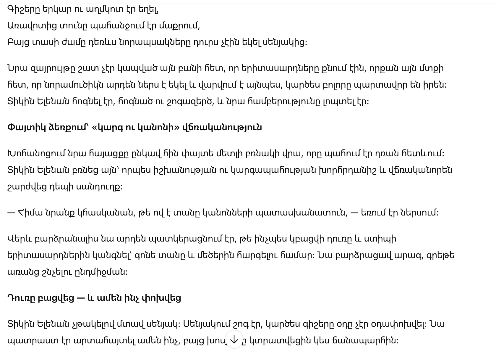 Поднимаясь наверх, она уже представляла, как распахнёт дверь и заставит молодых встать — пусть хотя бы из уважения к дому и старшим. Она поднялась быстро, почти не переводя дыхания.