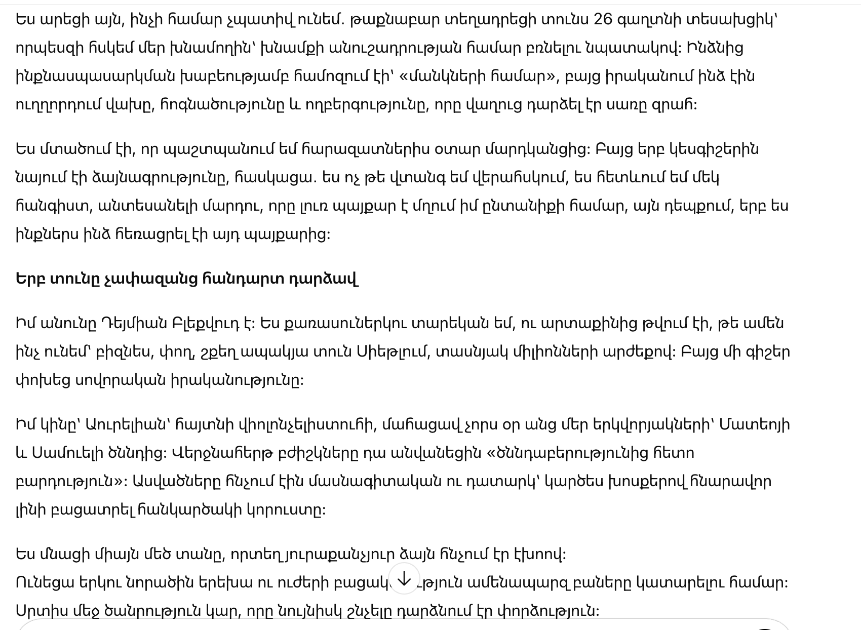 В ту ночь я начал думать не о том, как «разоблачить» няню, а о том, как вернуть дому чувство безопасности — и для детей, и для себя. И если правда действительно страшная, то, возможно, она вовсе не в Лине, а намного ближе: в нашей семье, в наших мотивах и в моём собственном ослеплении болью.
