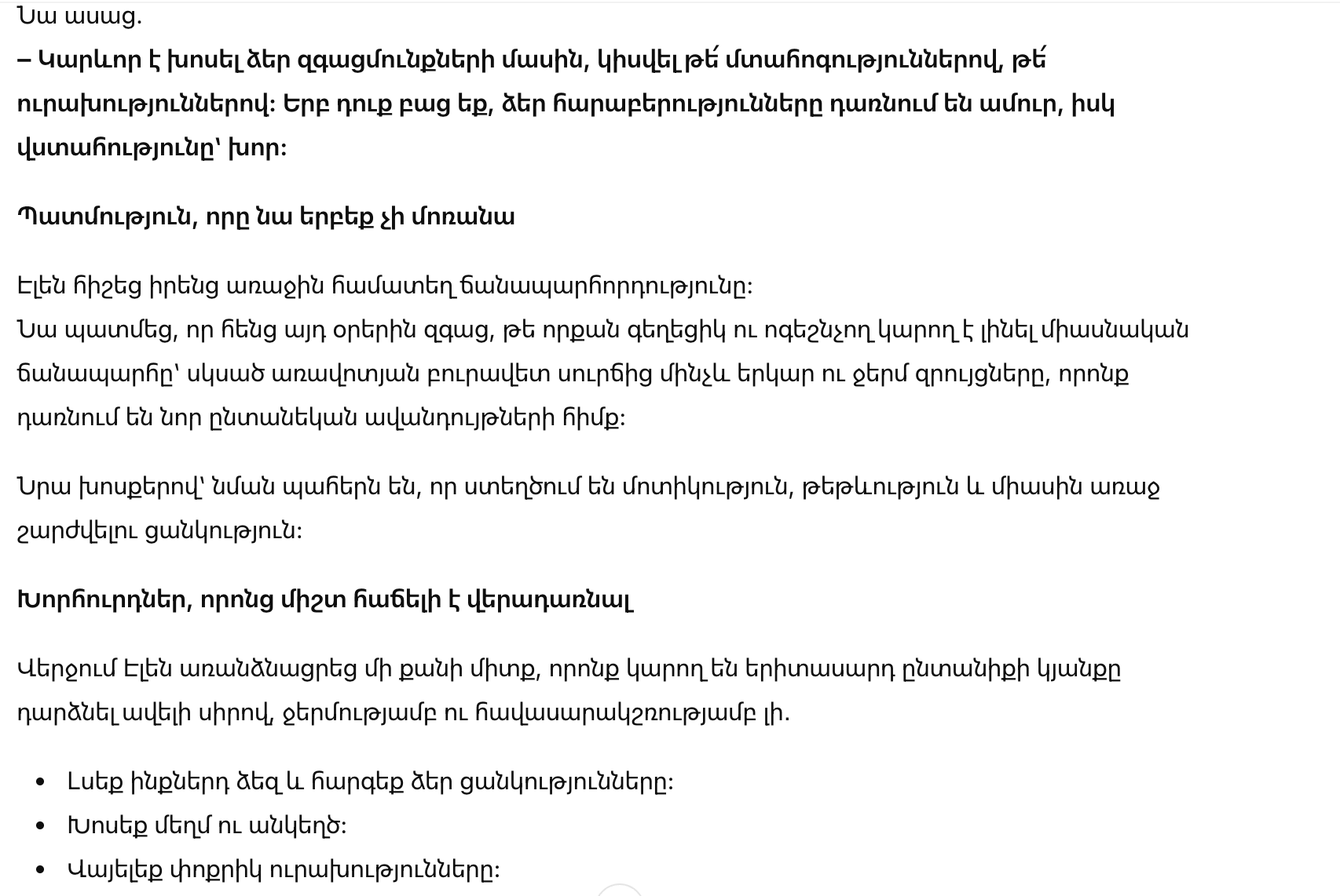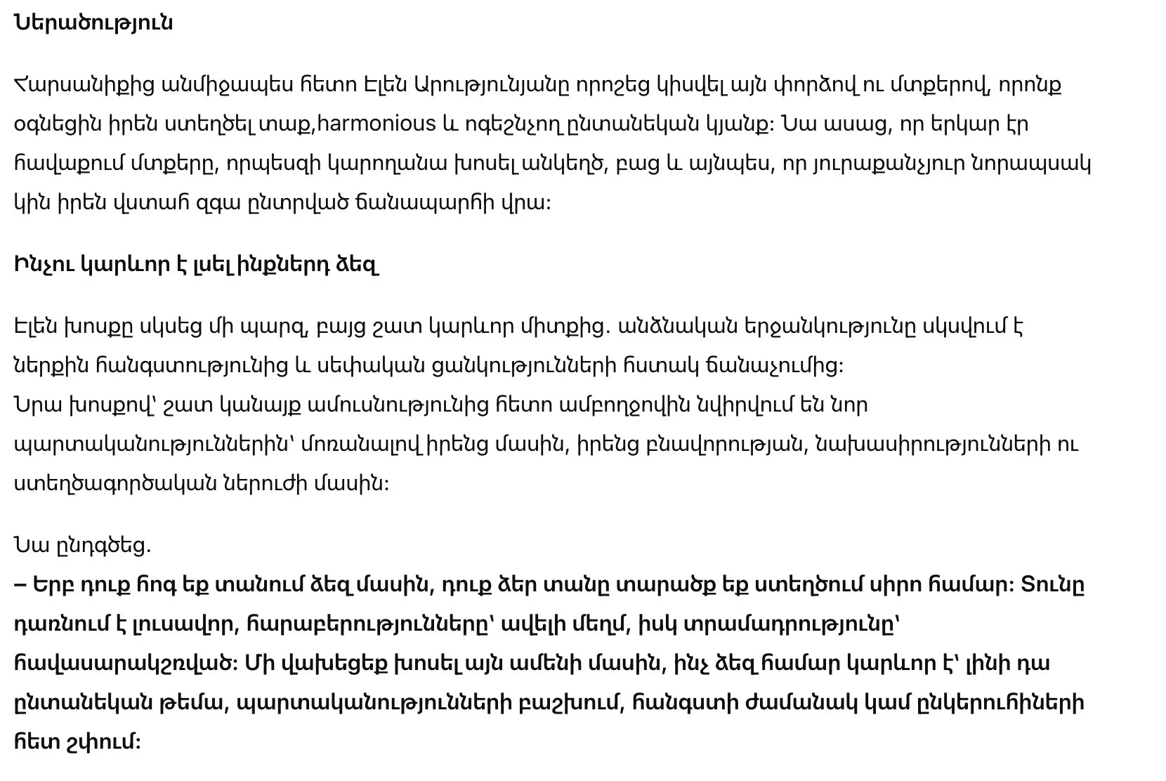 Сразу после свадьбы Эллен Арутюнян решила поделиться тем, что помогло ей самой сделать семейную жизнь теплой, интересной и вдохновляющей. Она призналась, что долго собирала мысли, чтобы рассказать честно, открыто и так, чтобы каждая молодая жена смогла почувствовать уверенность в своем пути.
