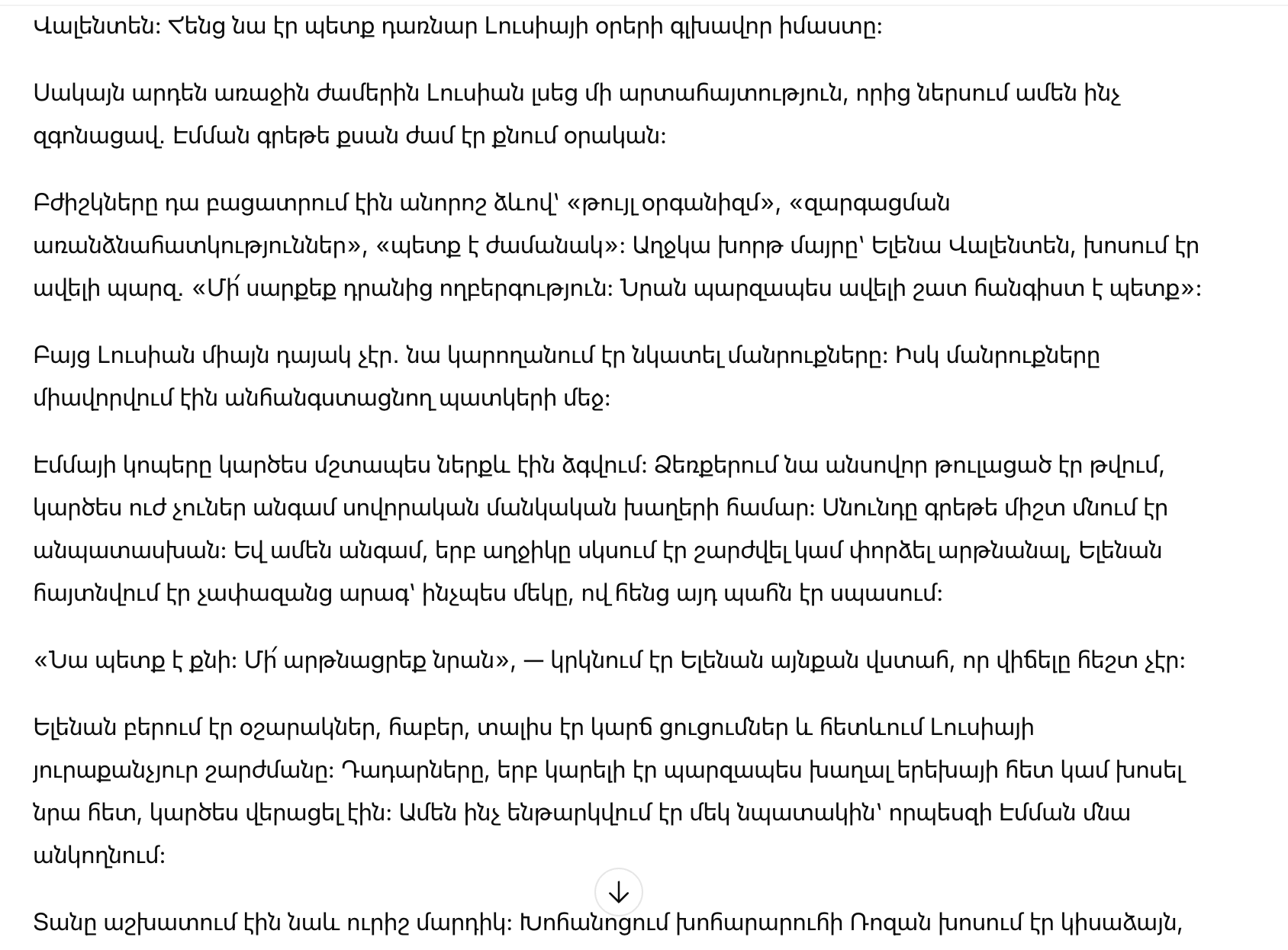 Елена приносила сиропы, таблетки, давала короткие указания и следила за каждым движением Лусии. Паузы, когда можно было просто поиграть с ребёнком или поговорить с ней, словно исчезали. Всё подчинялось одной цели — чтобы Эмма оставалась в постели.