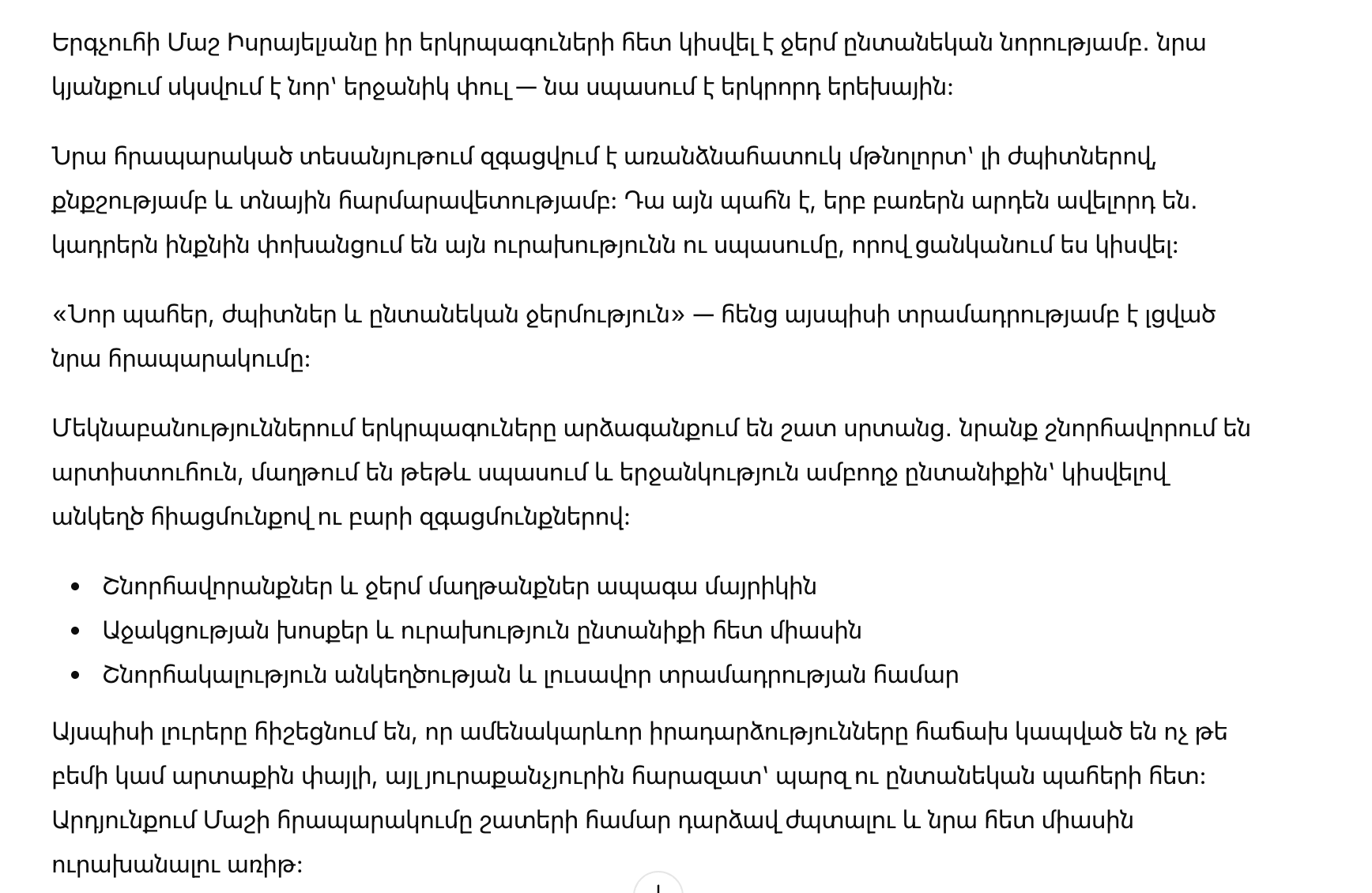 Такие новости напоминают: самые важные события часто связаны не со сценой и внешним блеском, а с простыми, близкими каждому семейными моментами. В итоге публикация Маш стала для многих поводом улыбнуться и порадоваться вместе с ней.
