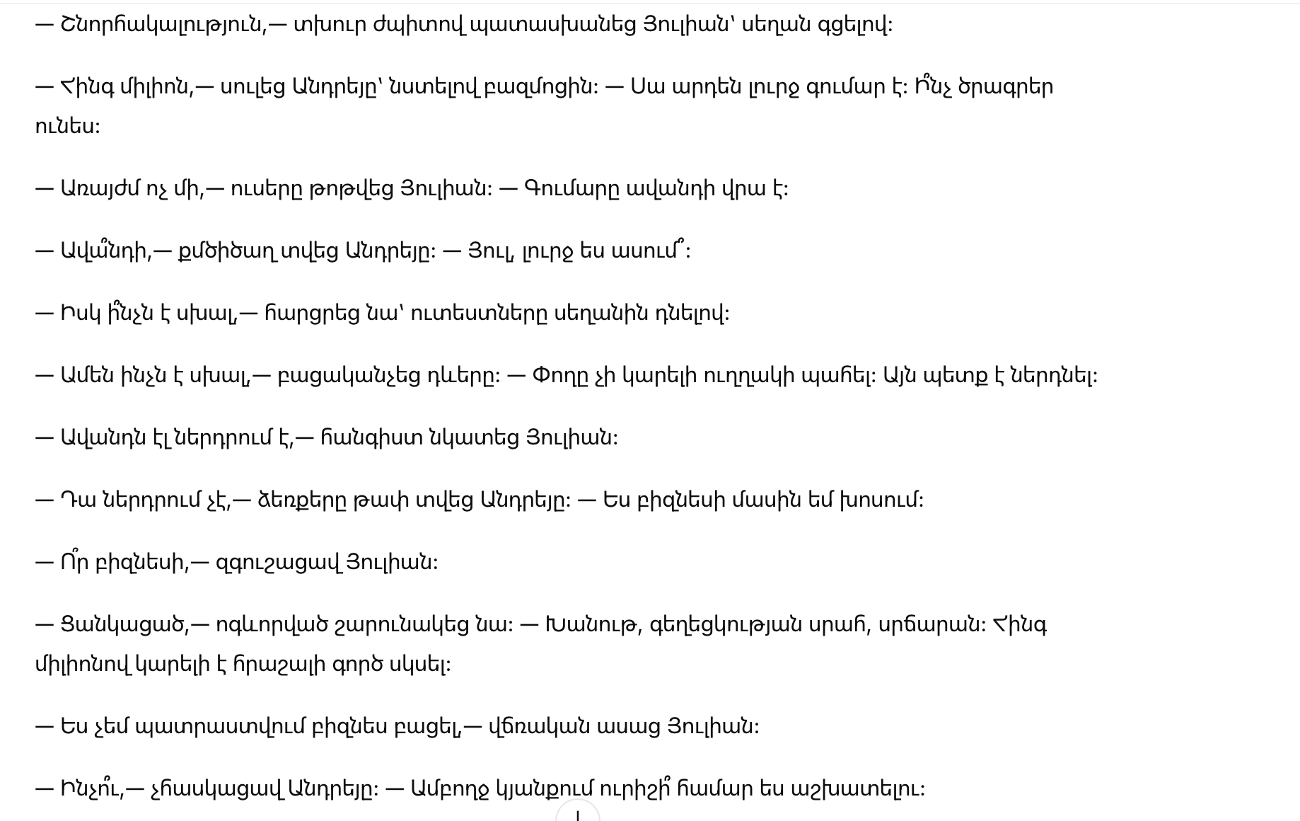 — Пять миллионов, — свистнул Андрей, усаживаясь на диван. — Это круто. Каковы твои планы?
