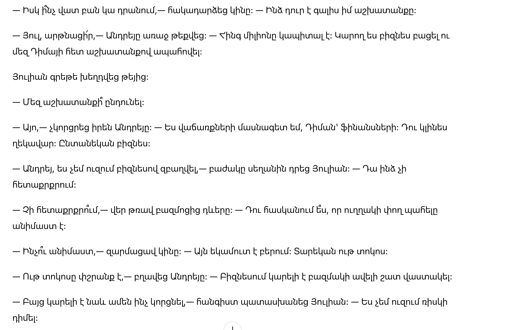 — Не интересно? — вскочил с дивана деверь. — Юля, ты понимаешь, что просто хранить деньги бессмысленно?!