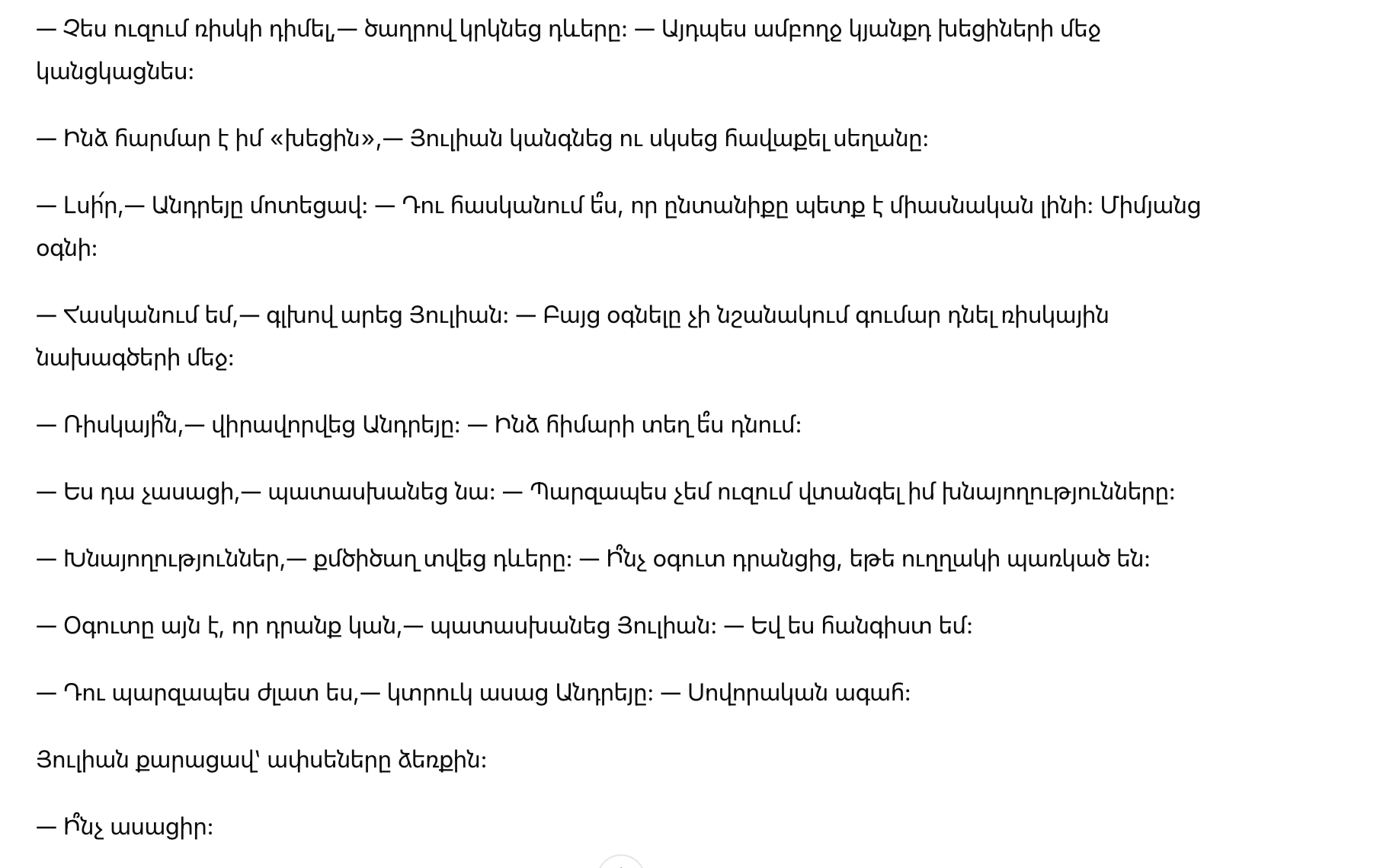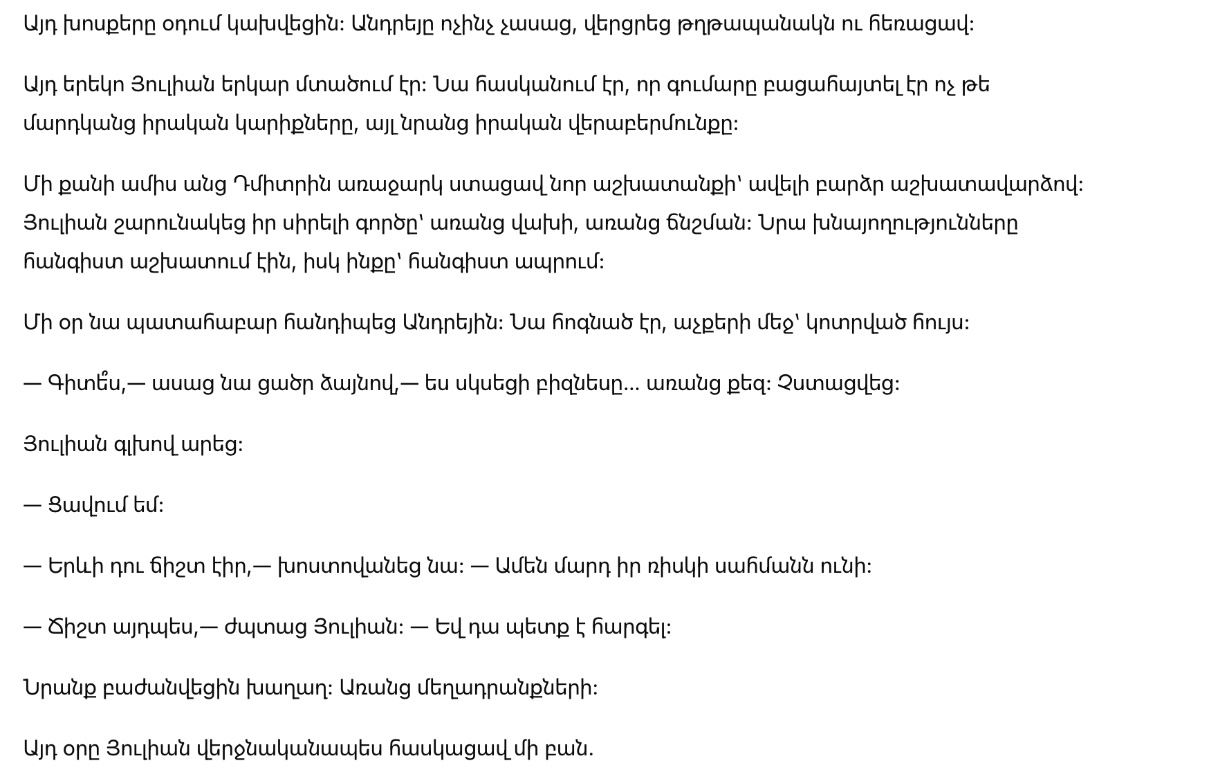 — Но можно и все потерять, — спокойно ответила Юлия. — Я не хочу рисковать.