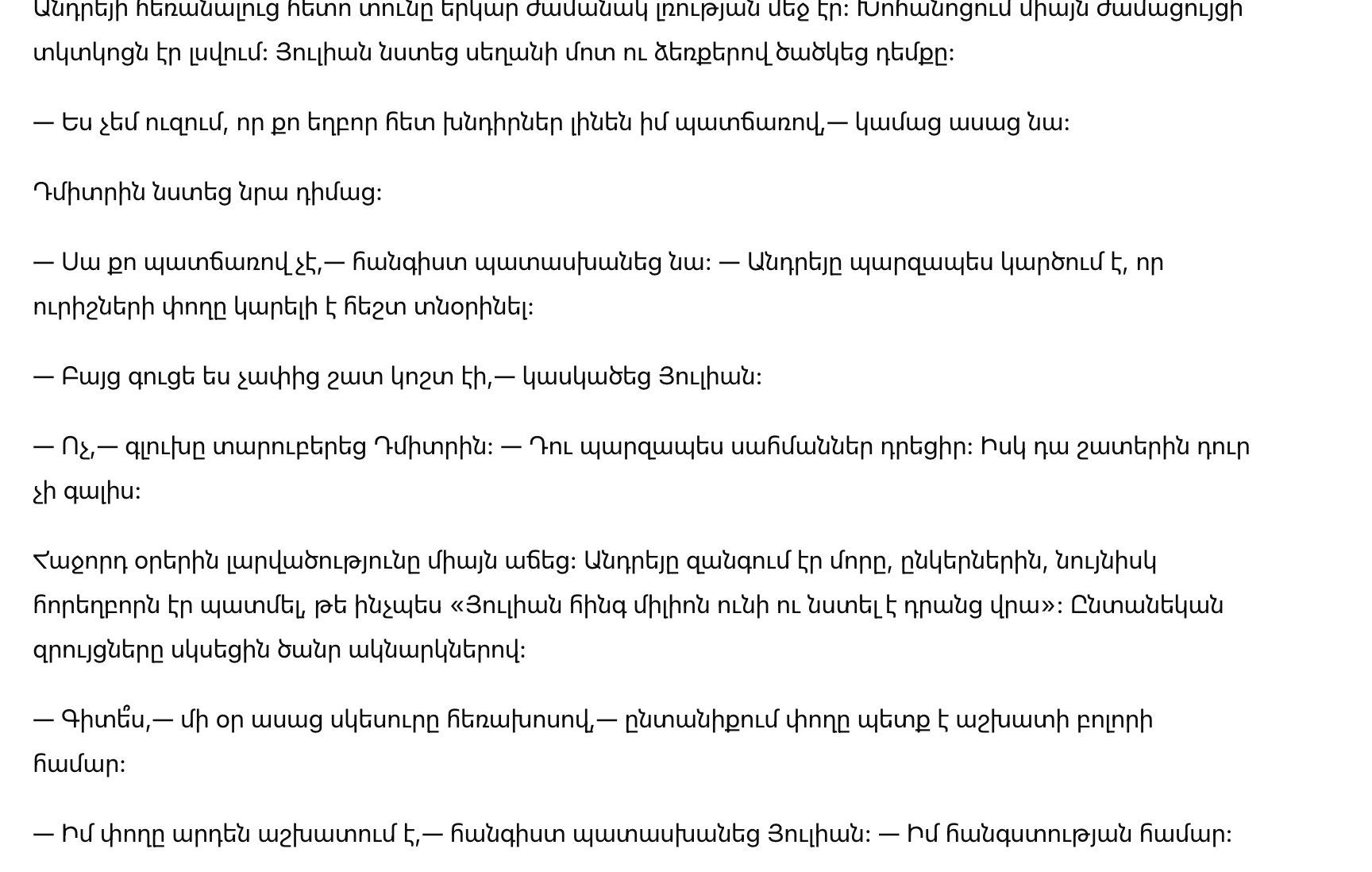 — Юля, пойми, — муж протянул руку к жене. — Это же семья. Они давят на меня. Мне тяжело с этим.