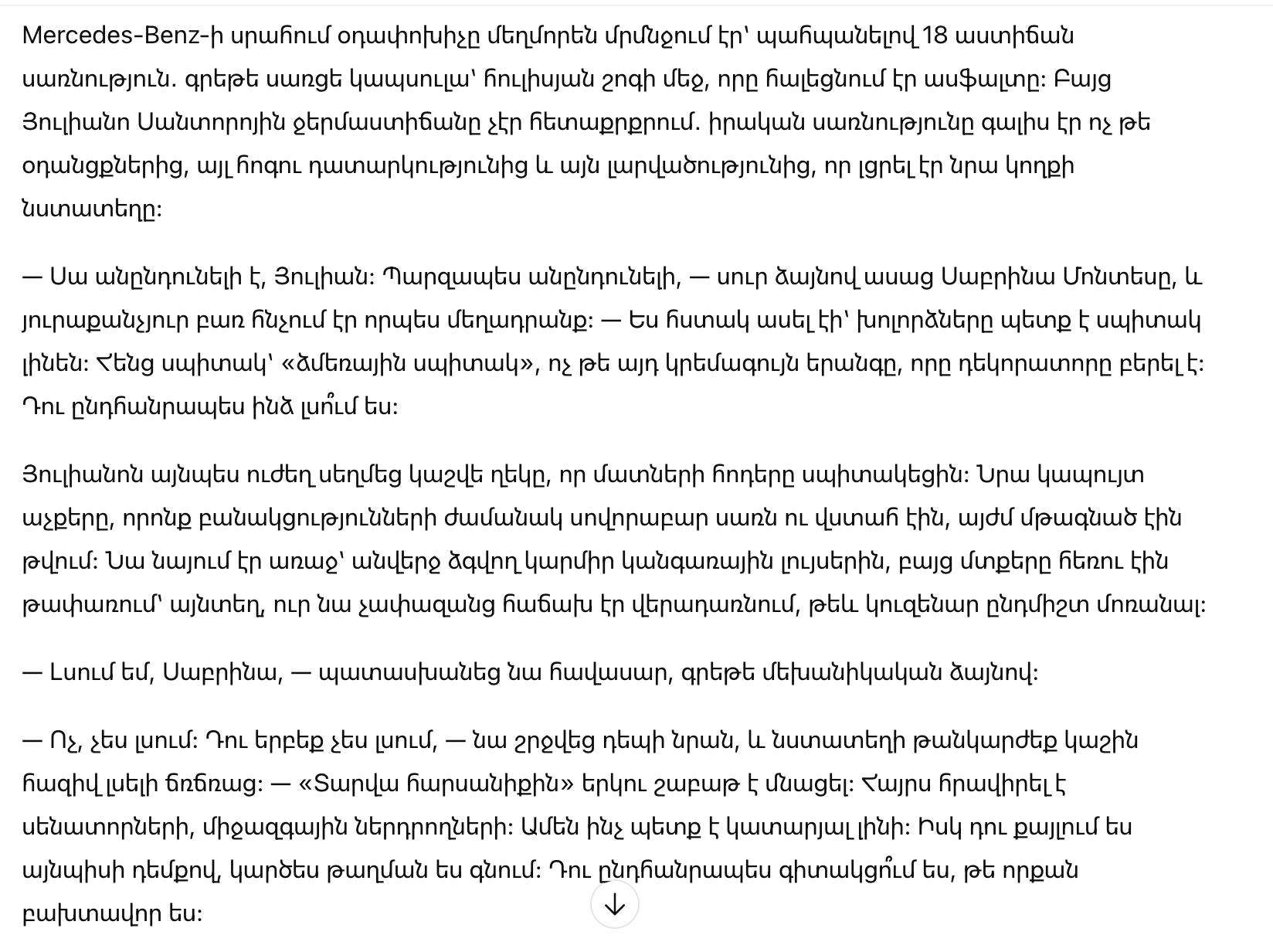 В салоне Mercedes‑Benz тихо гудел кондиционер, удерживая холодные 18 градусов — почти ледяную капсулу посреди июльского зноя, плавившего асфальт. Но Юлиану Санторо было не до температуры: настоящий холод исходил не из воздуховодов, а от пустоты в душе и от напряжения, которое заполняло место рядом.