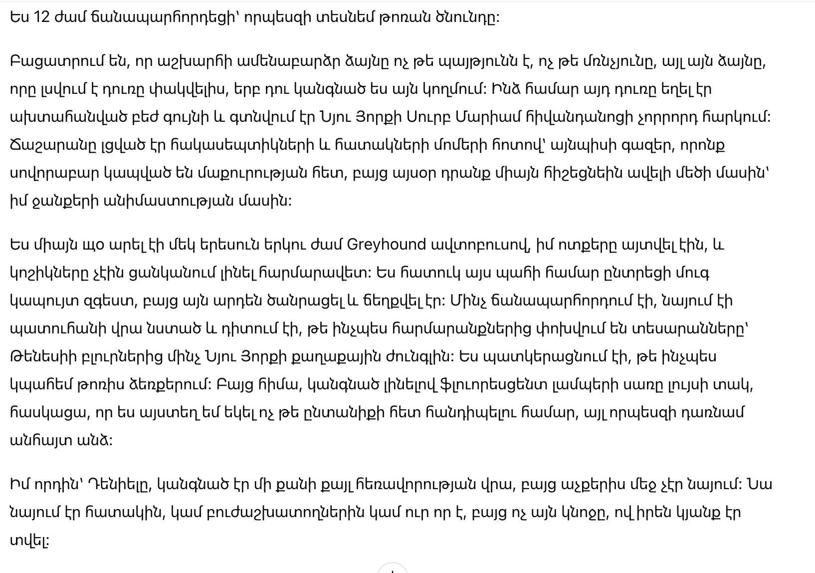 Я только что преодолела двенадцать часов в автобусе Greyhound, мои ноги отекли, а туфли отказывались быть удобными. Я выбрала темно-синее платье специально для этого момента, но оно уже стало тяжелым и помятым. Весь путь я провела, уставившись в запотевшее окно, наблюдая, как за окном меняются пейзажи — от холмов Теннесси до городской джунгли Нью-Йорка. Я представляла, как буду держать внука на руках. Но теперь, стоя под холодным светом флуоресцентных ламп, я поняла, что приехала сюда не для встречи с семьей, а чтобы стать невидимкой.