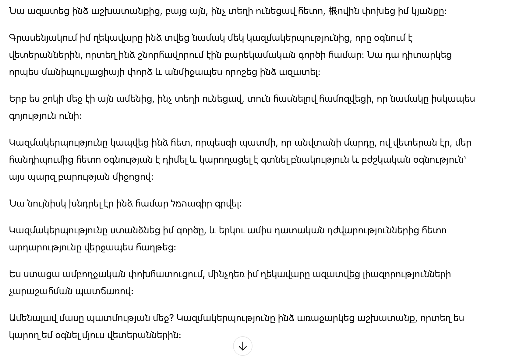 В кабинете мой начальник вручил мне письмо от одной из организаций помощи ветеранам, в котором меня поздравляли с добрым поступком. Он расценил это как попытку манипуляции и немедленно решил уволить меня.