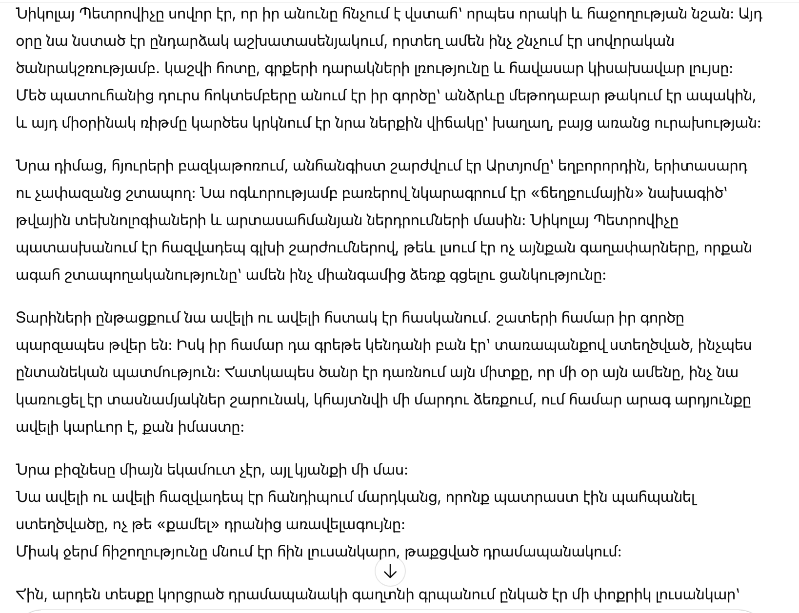 Перед ним, в кресле для гостей, нервно ерзал Артем — племянник, молодой и слишком торопливый. Он увлеченно рисовал словами «прорывной» проект о цифровых технологиях и зарубежных вложениях. Николай Петрович отвечал редкими кивками, хотя слышал не столько идеи, сколько жадную спешку: желание схватить все и сразу.