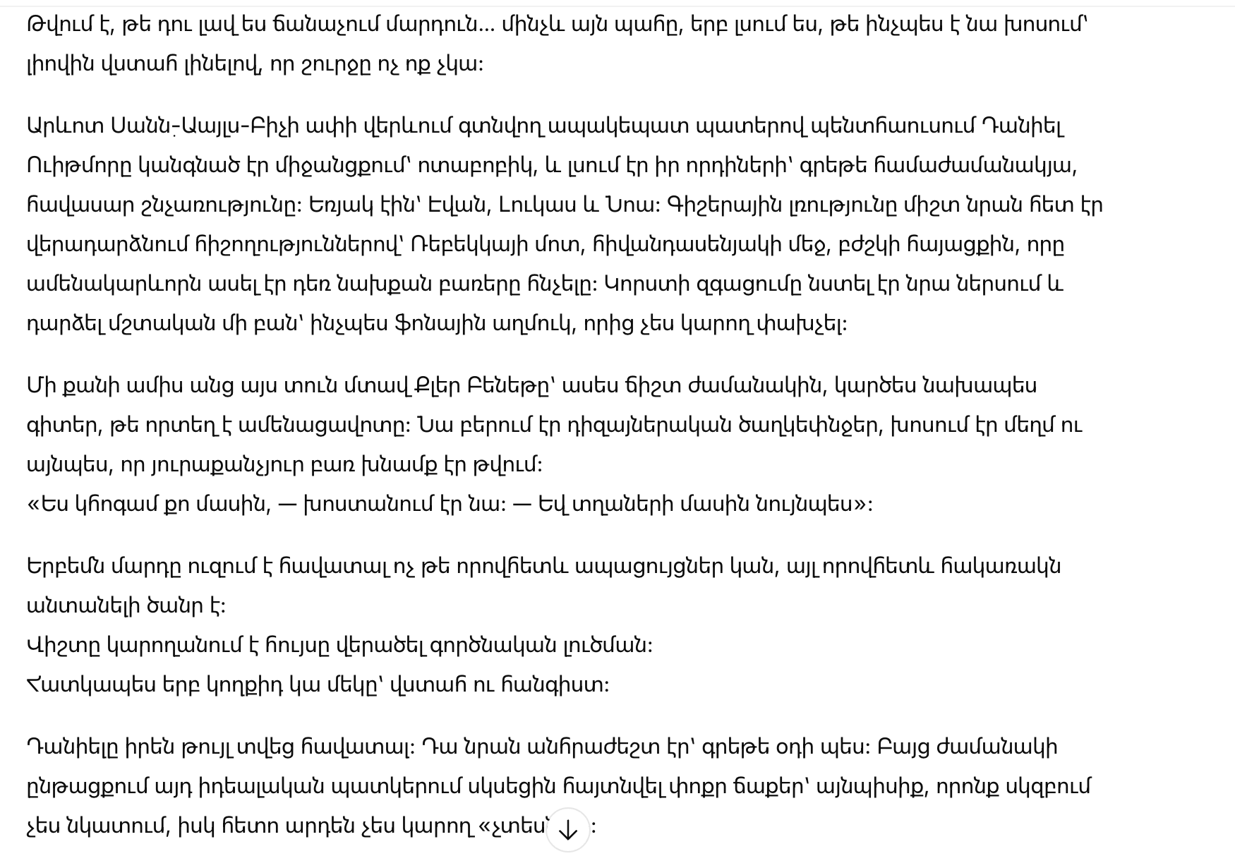 Дэниел позволил себе поверить. Ему это было нужно, почти как воздух. Но со временем в этой идеальной картинке начали появляться мелкие трещины — те, которые замечаешь не сразу, а потом уже не можешь «развидеть».