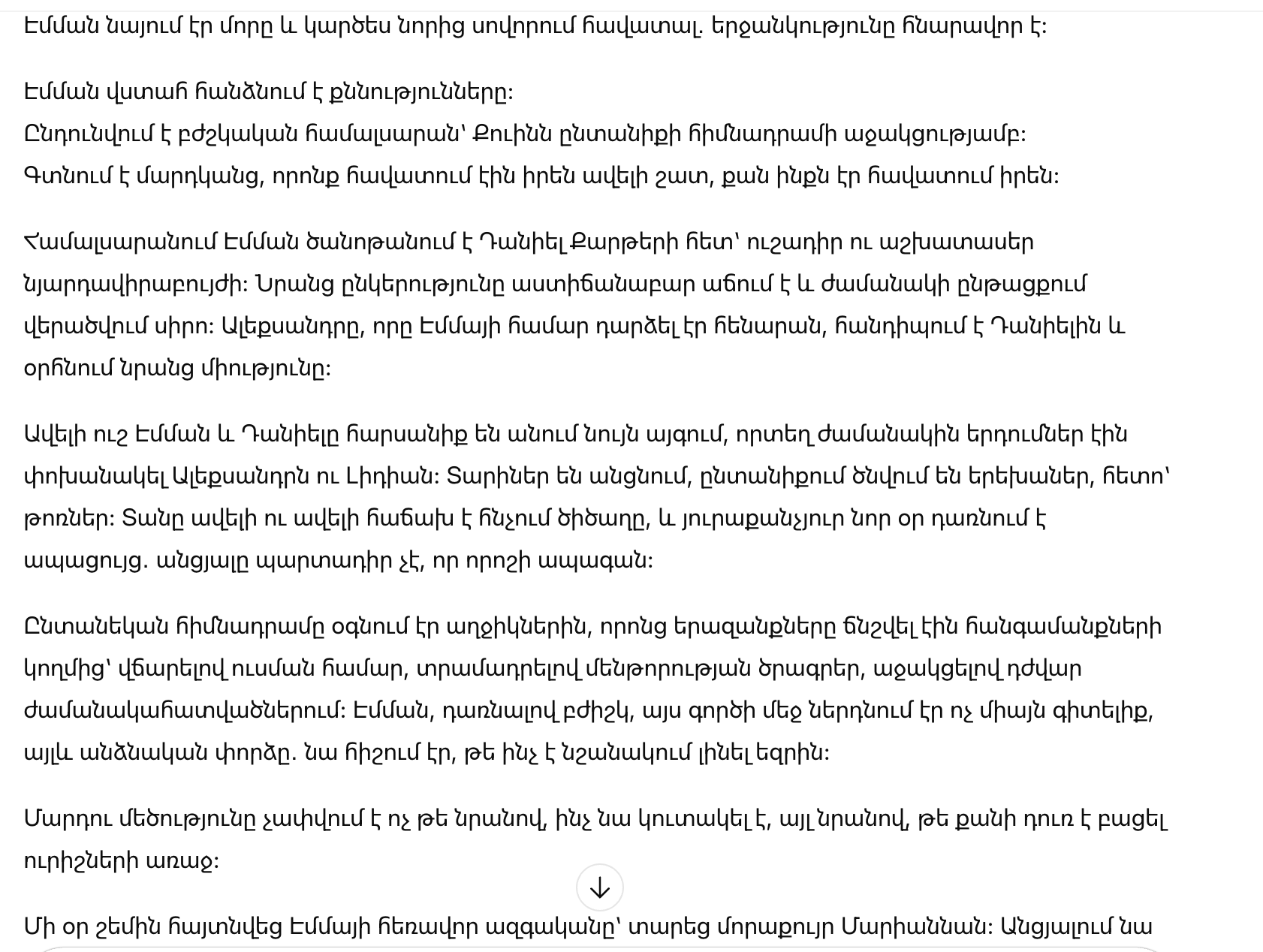 В университете Эмма познакомилась с Даниэлем Картером — внимательным и трудолюбивым нейрохирургом. Их дружба росла постепенно и со временем переросла в любовь. Александр, ставший для Эммы человеком, на которого можно опереться, встретился с Даниэлем и благословил их союз.