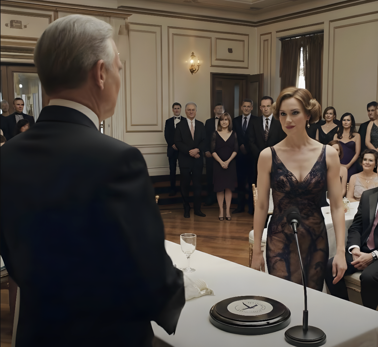 Зал притих. Гости начали оборачиваться: от трибуны — ко мне, от меня — к моему отцу, который всё ещё держал микрофон так, будто мог управлять историей и дальше.