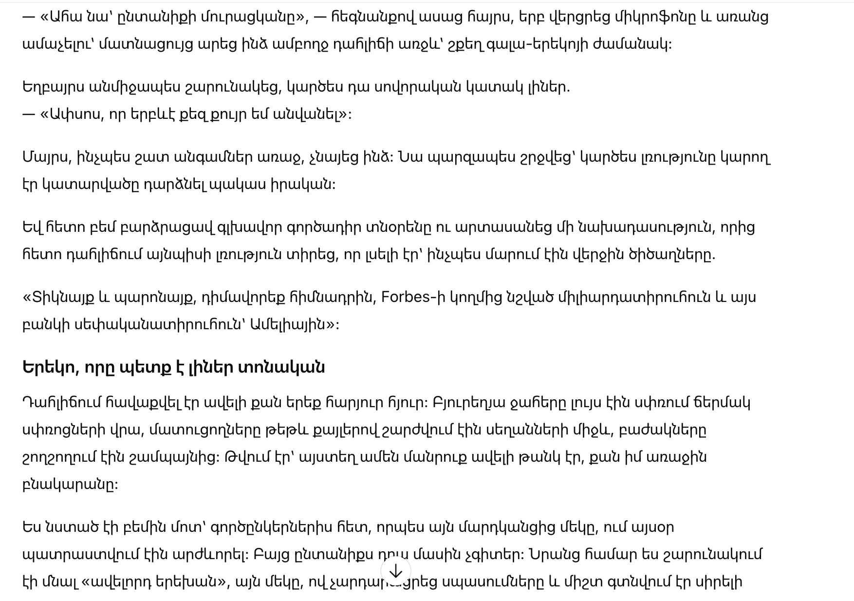 Я сидела ближе к сцене вместе с коллегами — как одна из тех, кого сегодня собирались отметить. Но моя семья об этом не знала. Для них я по-прежнему оставалась «лишним ребёнком», той, кто не оправдал ожиданий и всегда была на фоне любимого сына.