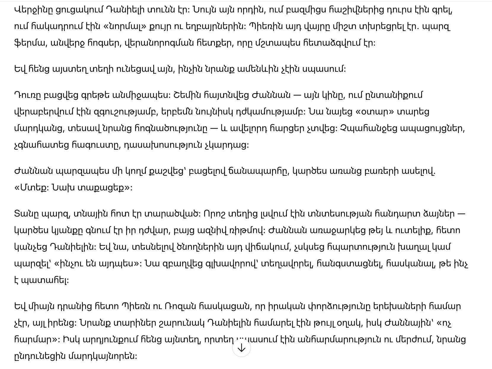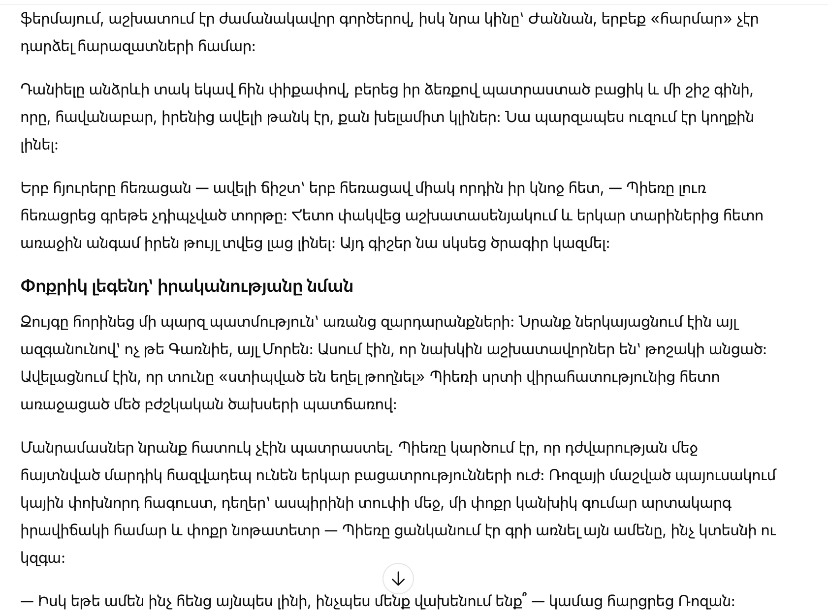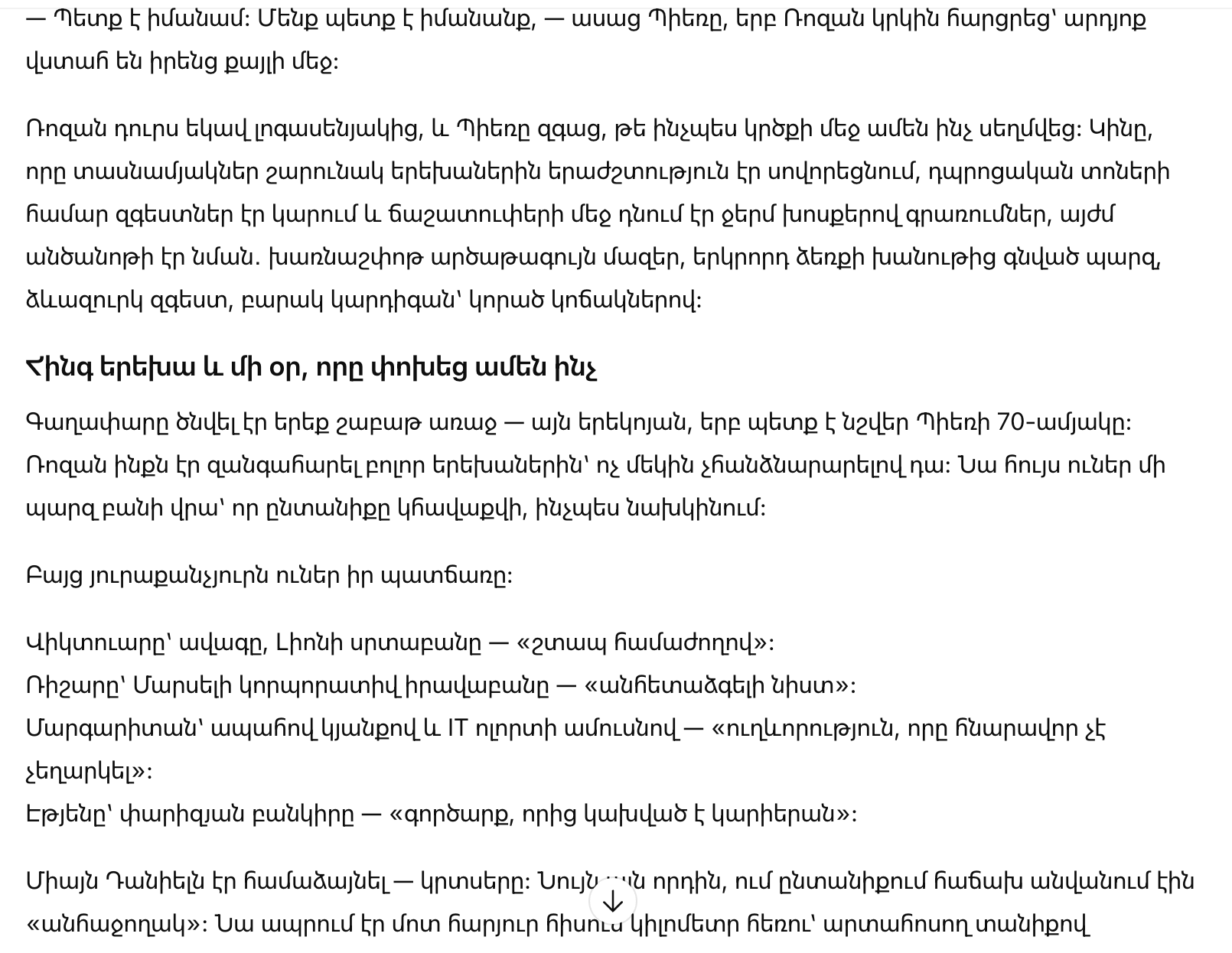 «Мне нужно знать. Нам нужно знать», — сказал Пьер, когда Роза ещё раз спросила, уверены ли они в этом.