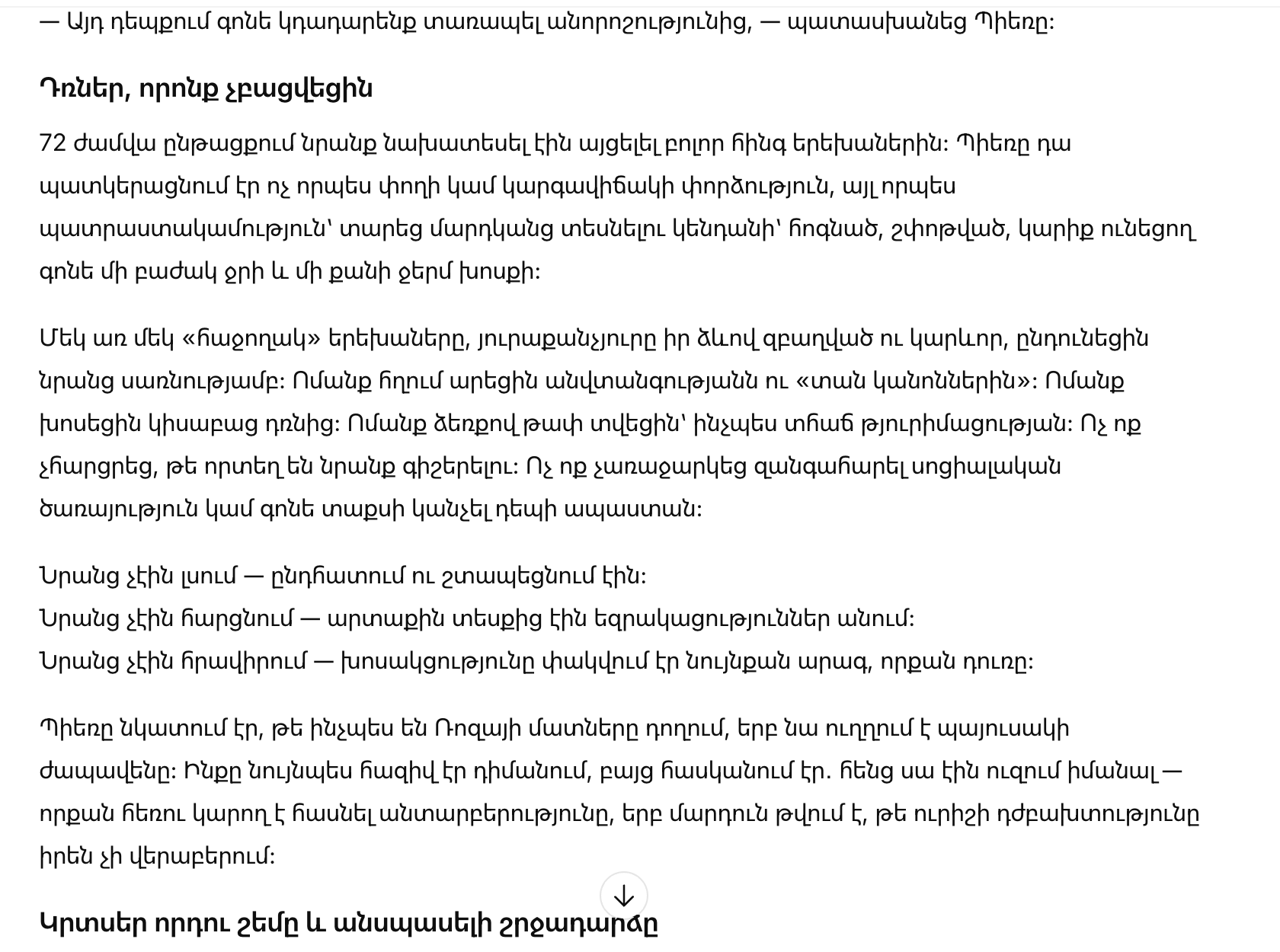 Пьер замечал, как у Розы дрожат пальцы, когда она поправляет ремешок сумки. Он тоже держался из последних сил, но понимал: именно это они и хотели узнать — как далеко может зайти равнодушие, если человеку кажется, что чужая беда его не касается.
