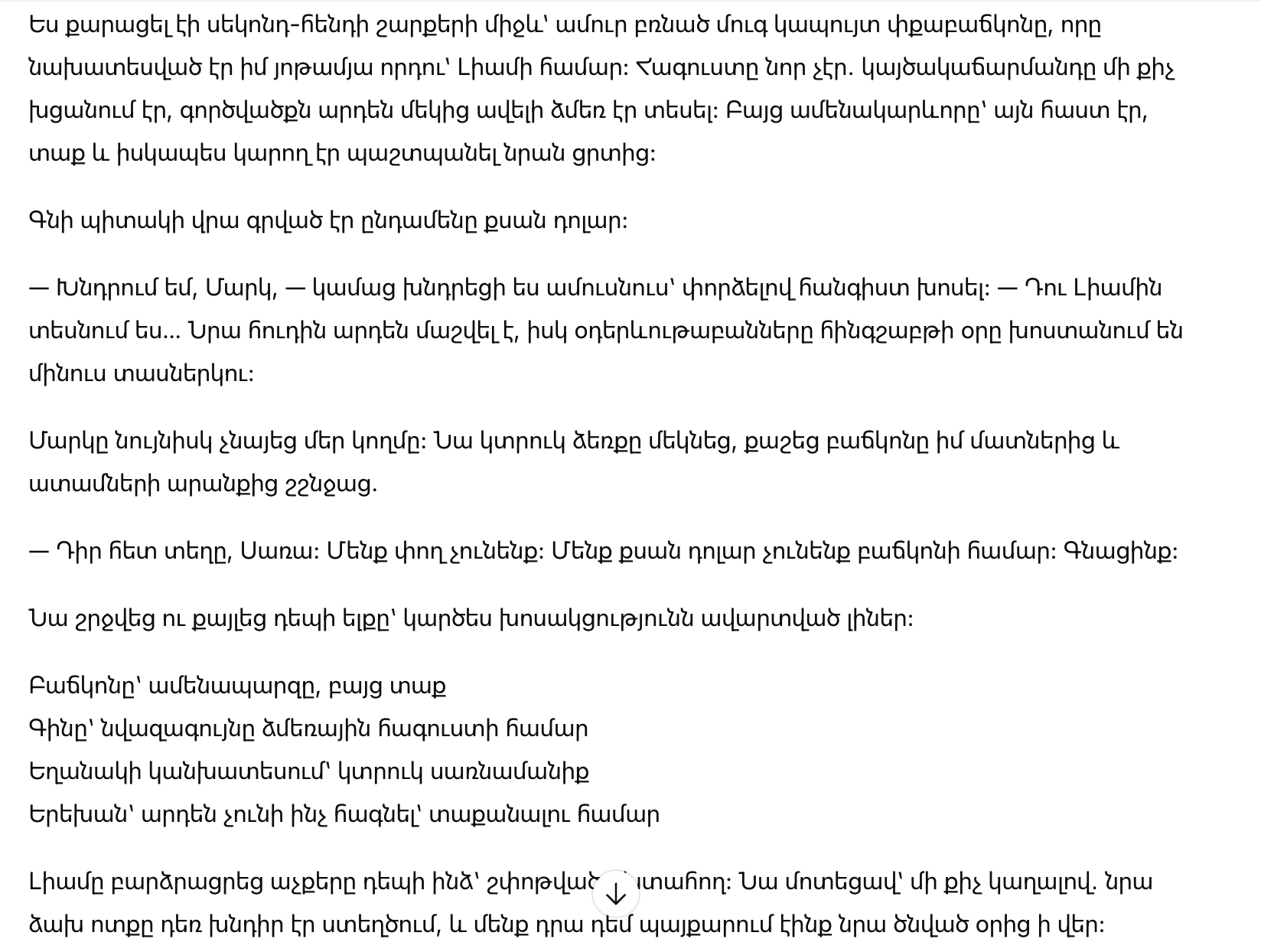 — Пожалуйста, Марк, — тихо попросила я мужа, стараясь говорить спокойно. — Ты же видишь Лиама… Его худи уже протерлось, а синоптики обещают в четверг минус двенадцать.