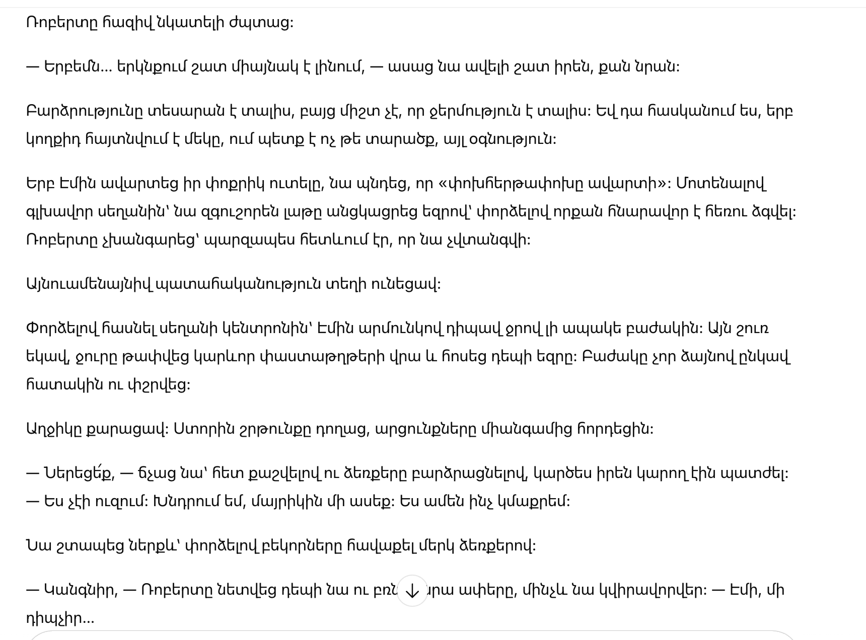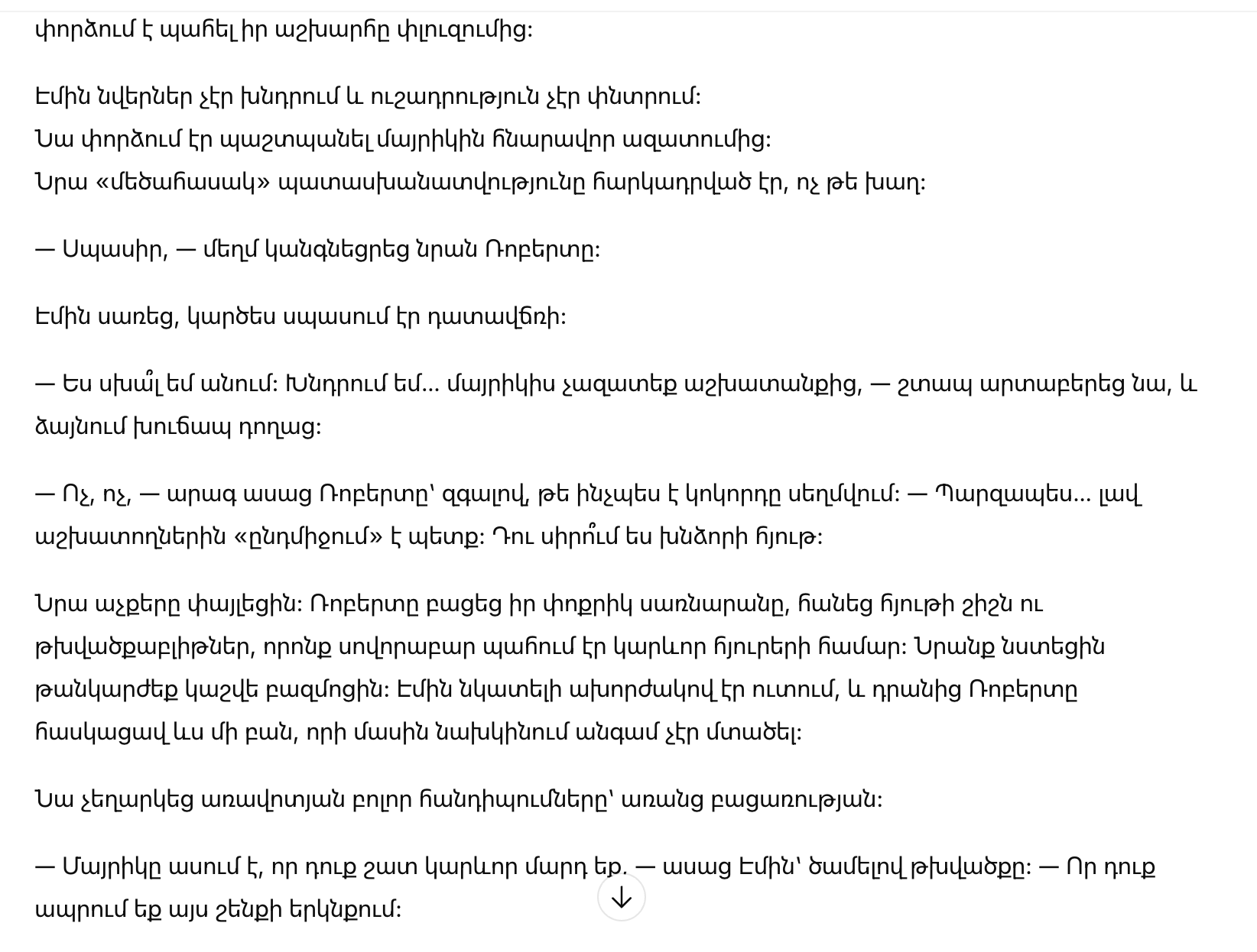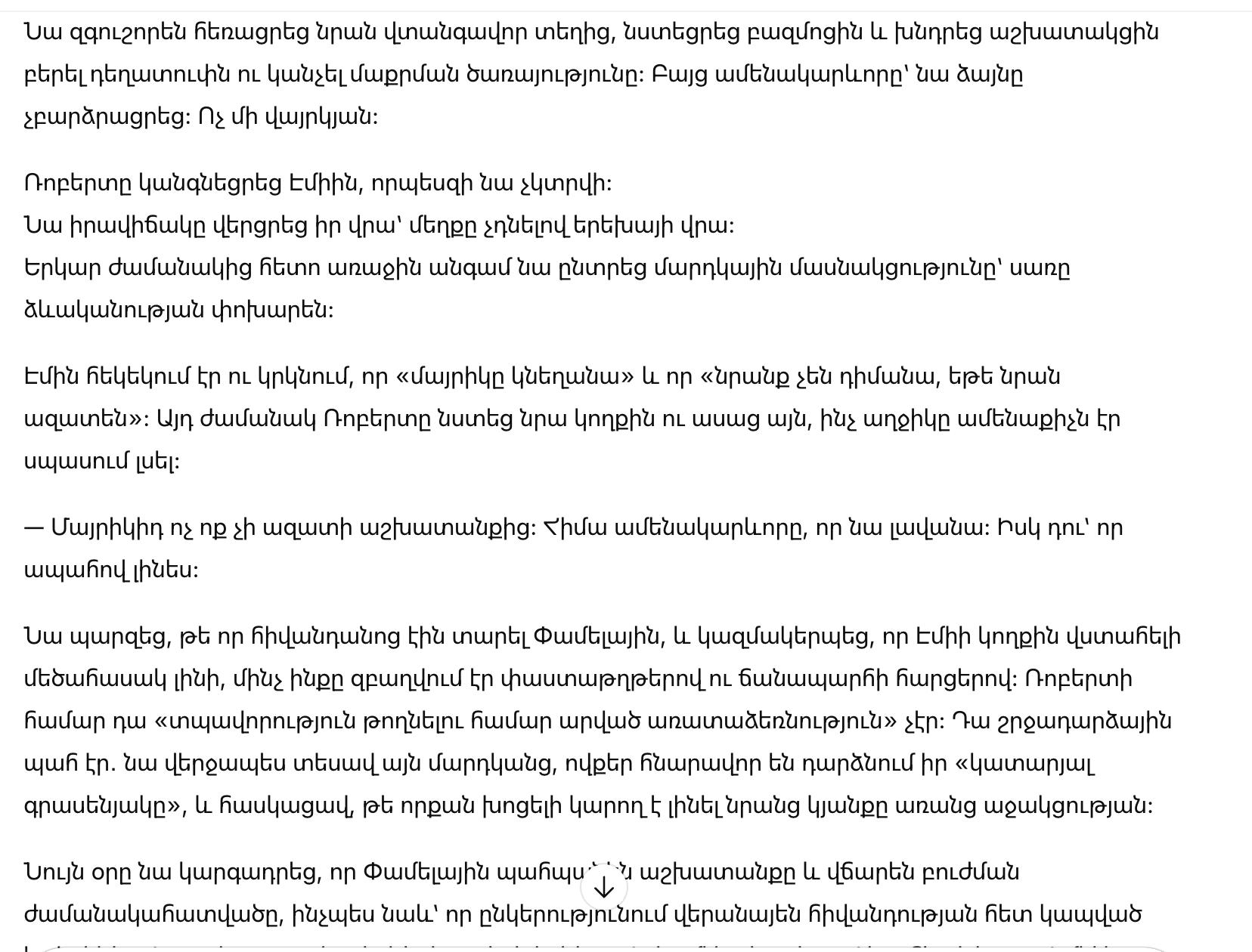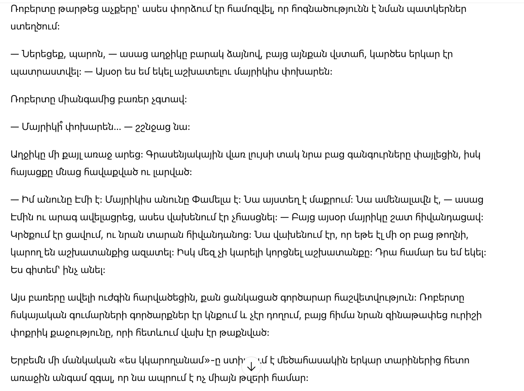 Эти слова ударили сильнее любого делового отчёта. Роберт заключал сделки на огромные суммы и не дрожал, но сейчас его разоружила чужая маленькая смелость, за которой прятался страх.