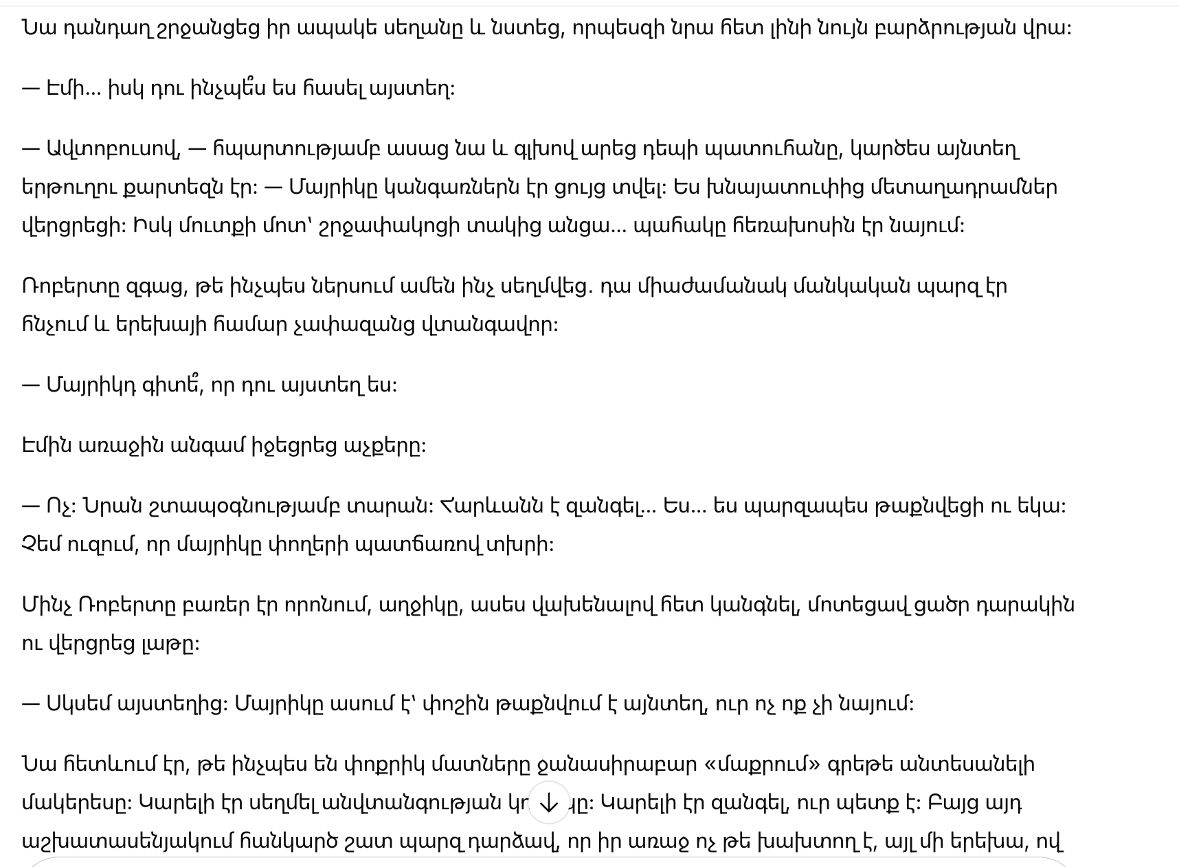 Роберт почувствовал, как у него сжалось внутри: это звучало одновременно и по-детски просто, и слишком опасно для ребёнка.