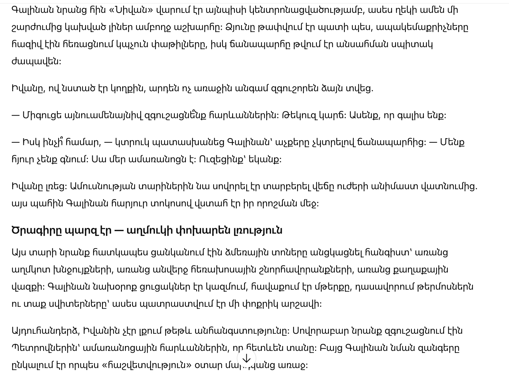 В этом году им особенно хотелось провести зимние праздники спокойно: без шумных застолий, без бесконечных поздравлений по телефону, без городской гонки. Галина заранее составляла списки, собирала продукты, укладывала термосы и тёплые свитера — будто готовилась к маленькому походу.