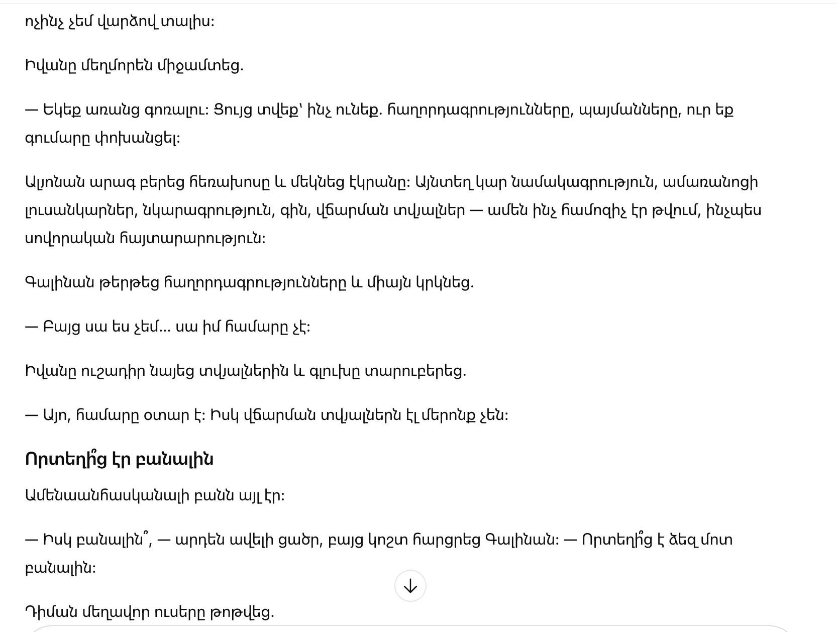 — Давайте без крика. Покажите, что у вас есть: сообщения, условия, куда переводили деньги.