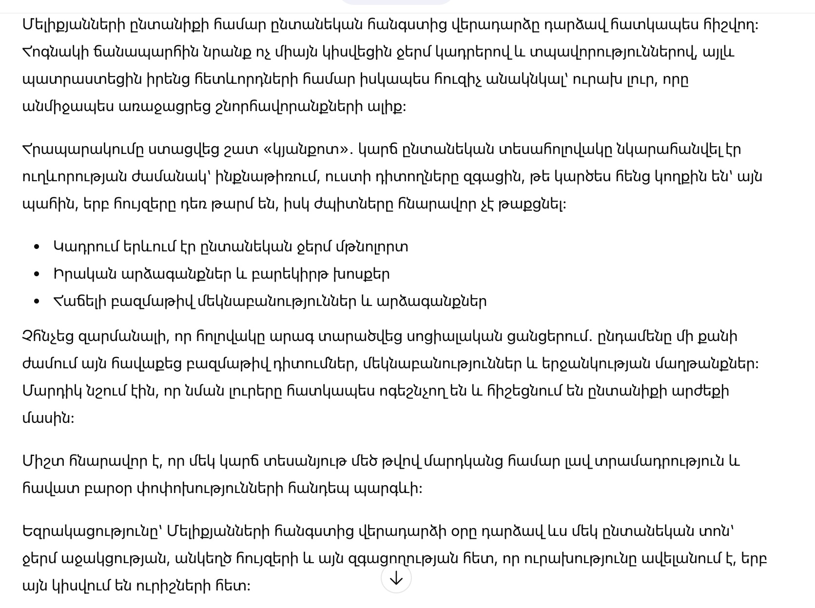 В итоге день возвращения из отпуска для Меликян превратился в ещё один семейный праздник — с тёплой поддержкой, искренними эмоциями и ощущением, что радость становится больше, когда ею делятся.