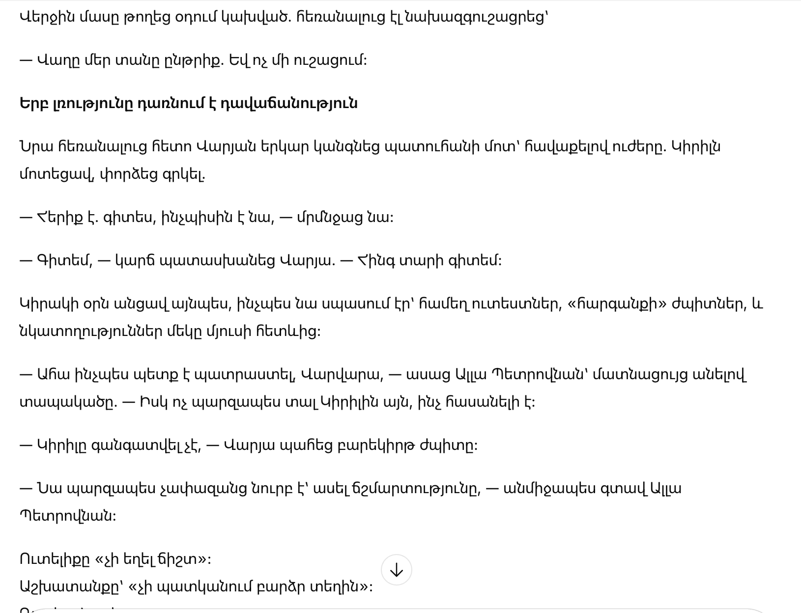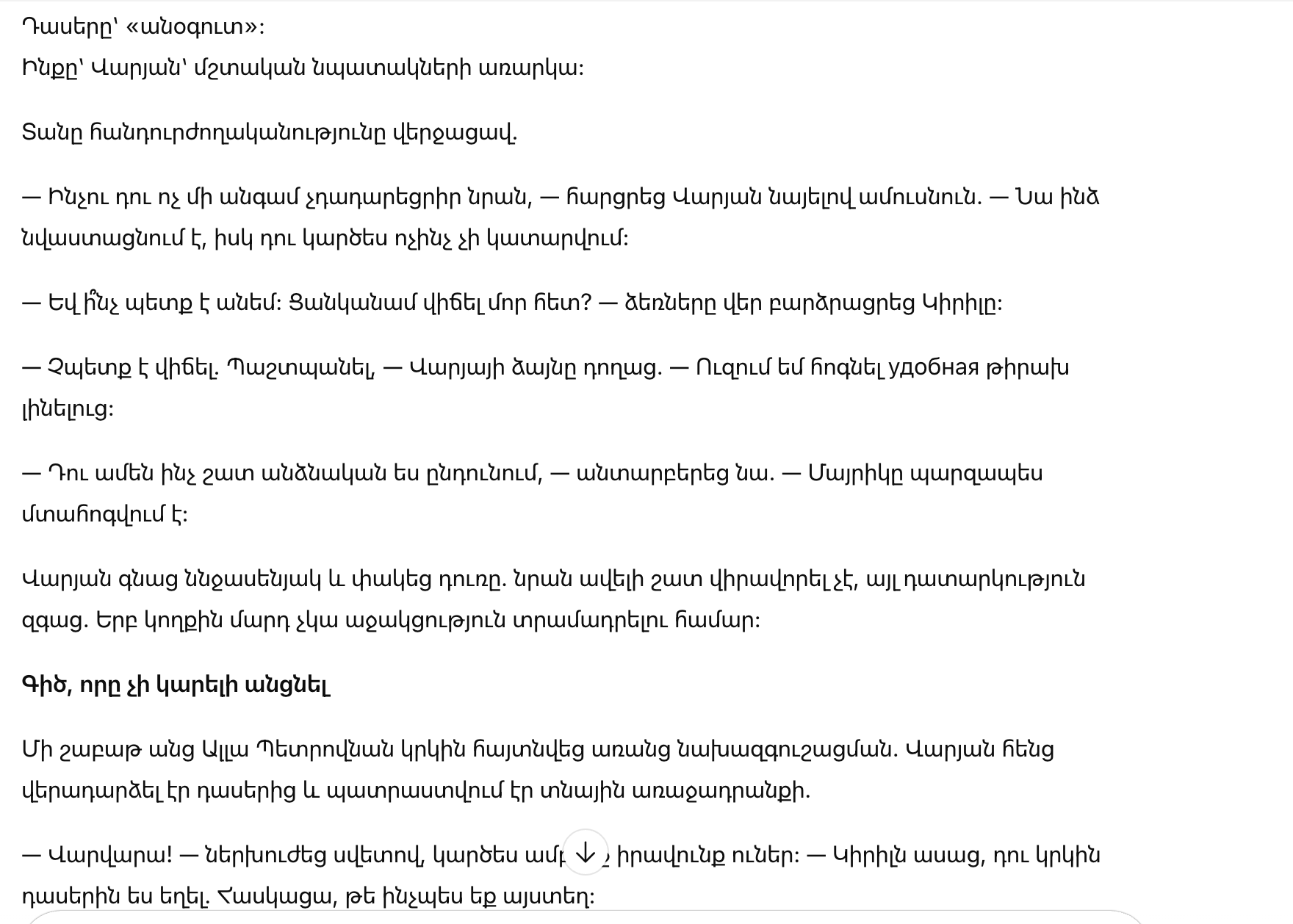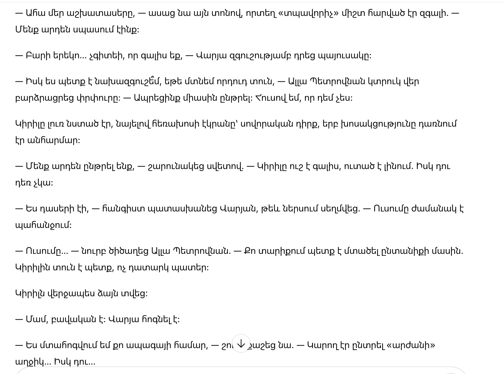 — Ничего. Хочу закончить быстрее — у меня учёба, — ответила Варя.