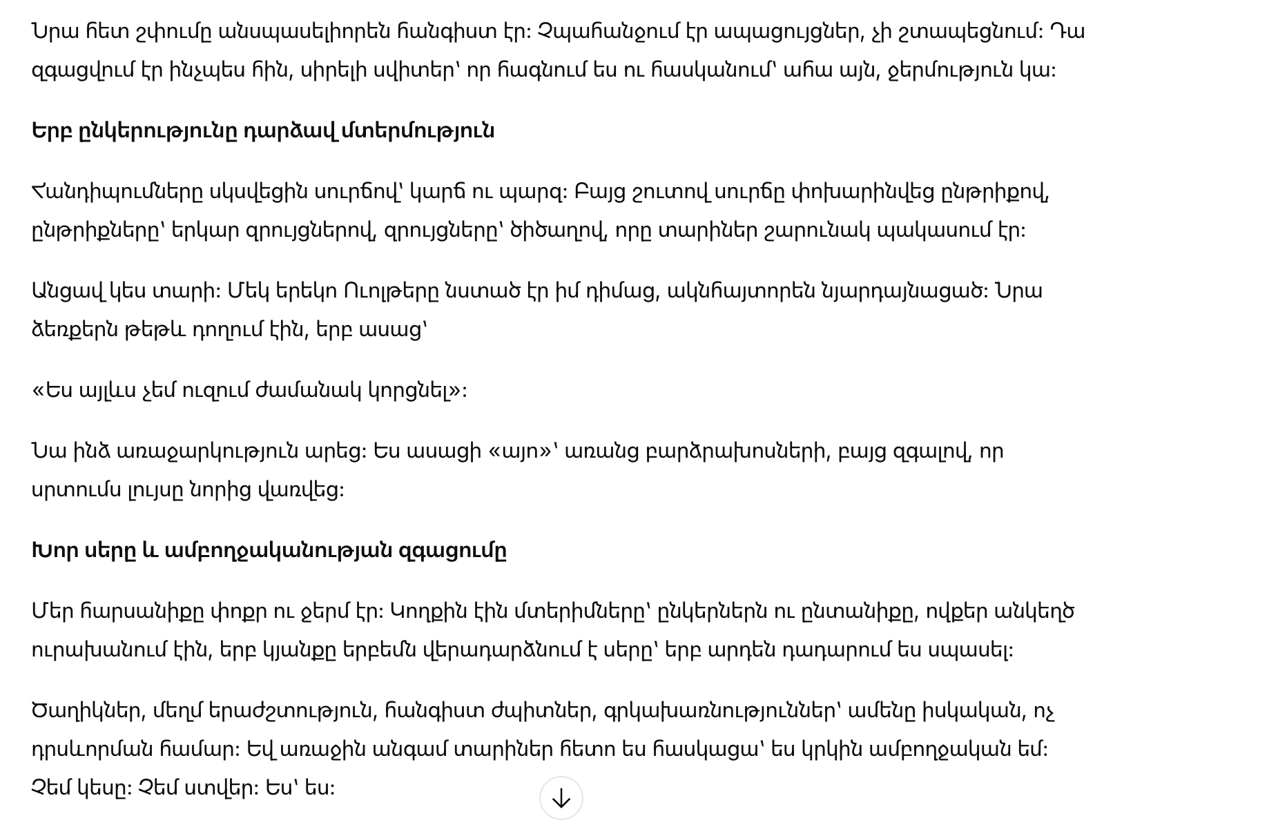 Встречи начались с кофе — коротких и простых. Но вскоре кофе сменился ужинами, ужины — долгими разговорами, а разговоры — смехом, которого мне не хватало годами.