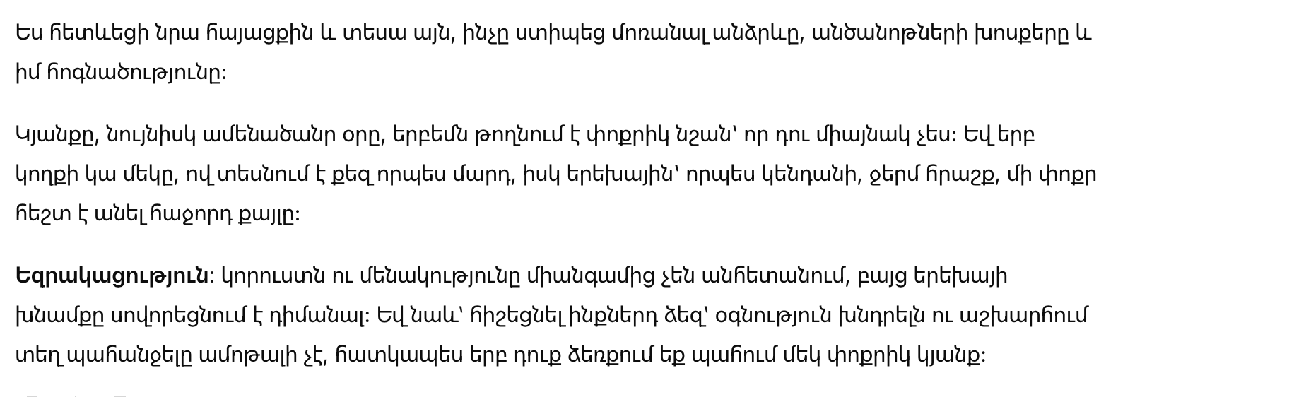 Вывод: потеря и одиночество не исчезают по щелчку, но забота о ребёнке учит держаться. А ещё — напоминать себе: просить уважения и места в этом мире не стыдно, особенно когда ты несёшь на руках чью-то маленькую жизнь.