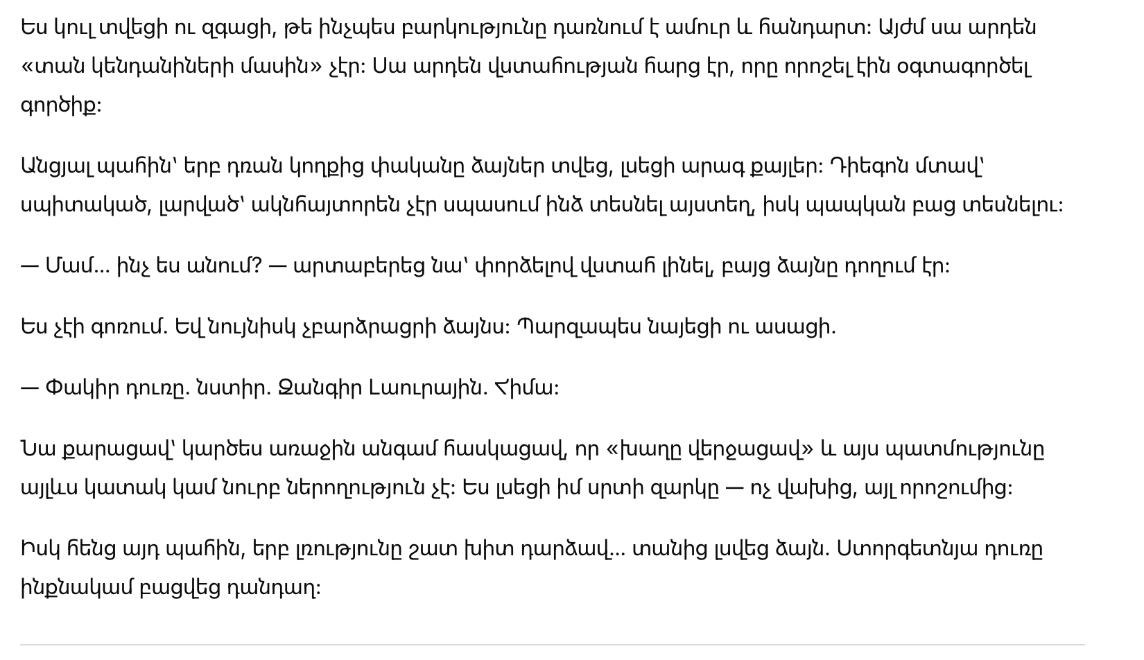 Он застыл, будто впервые понял, что «переиграл» и что эта история уже не закончится шуткой и неловкими извинениями. Я слышала, как у меня в груди бьётся сердце — не от страха, а от решимости.