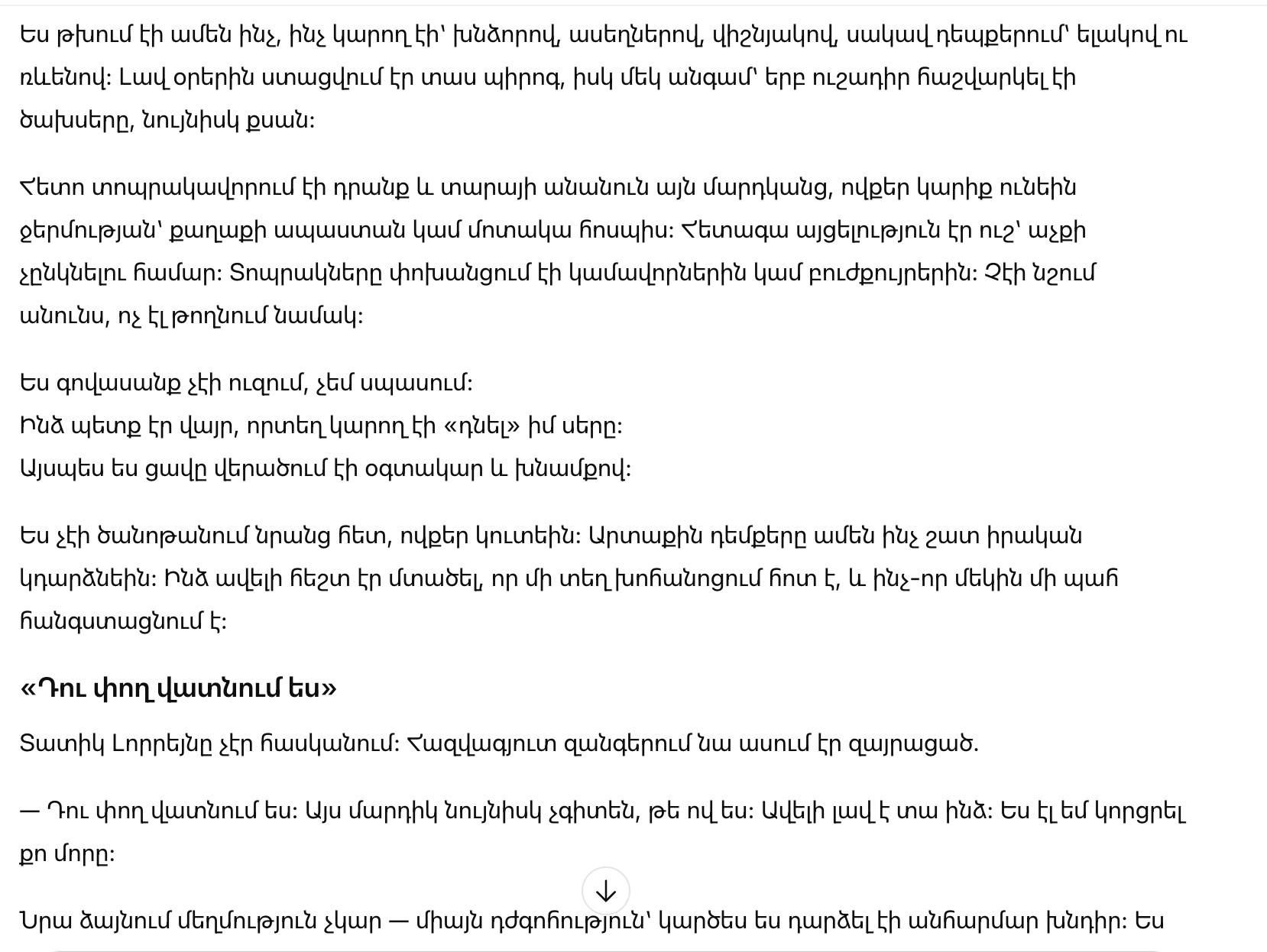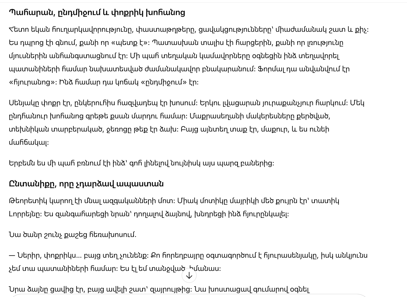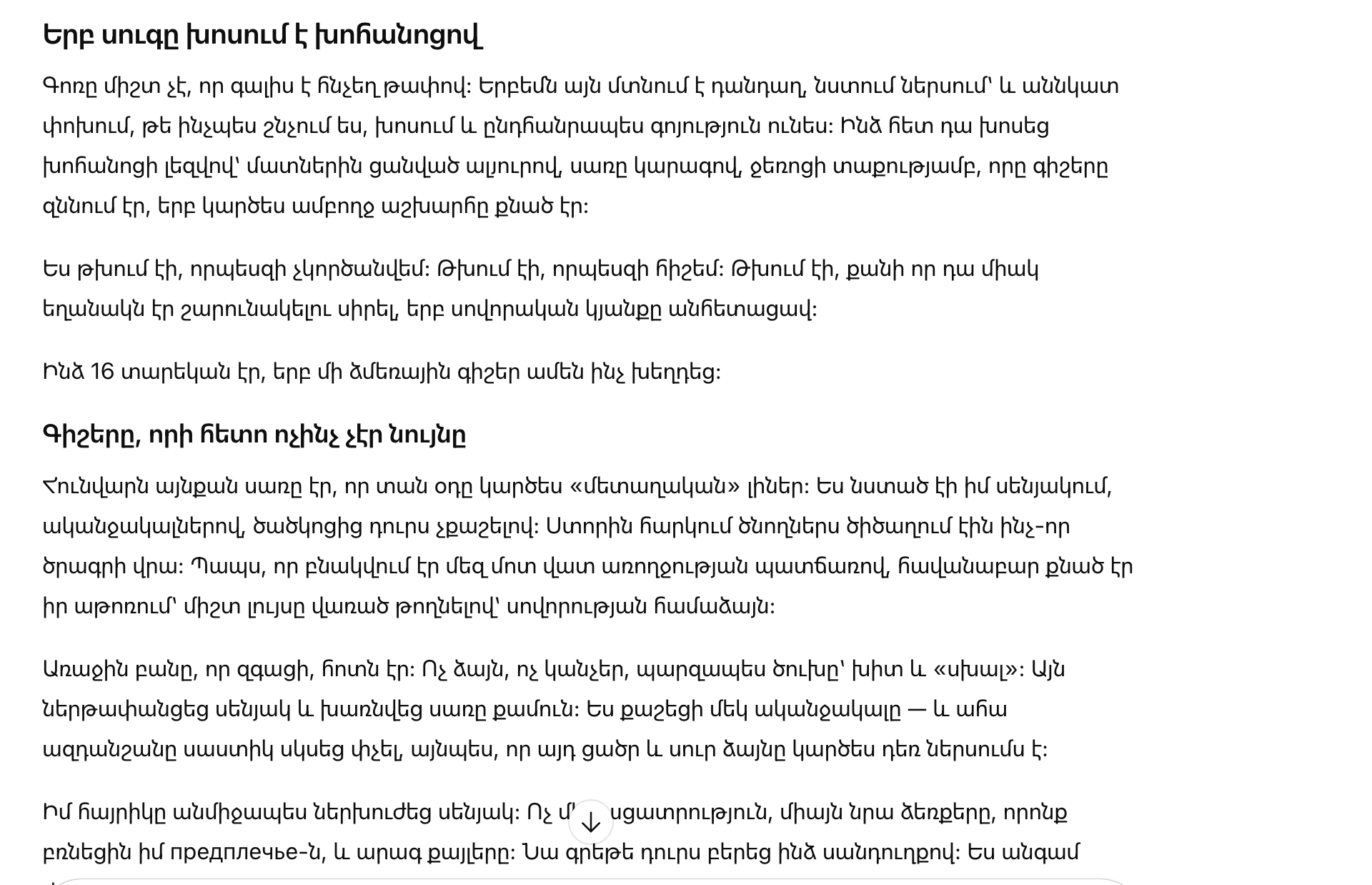 Потом были похороны, документы, соболезнования — их было и слишком много, и одновременно недостаточно. Я ходила в школу потому, что «так надо». Отвечала на вопросы потому, что молчание смущало других. В какой-то момент местные волонтёры помогли мне устроиться в программу временного жилья для подростков, оставшихся без дома. Формально это называли общежитием. Для меня это было как кнопка «пауза».