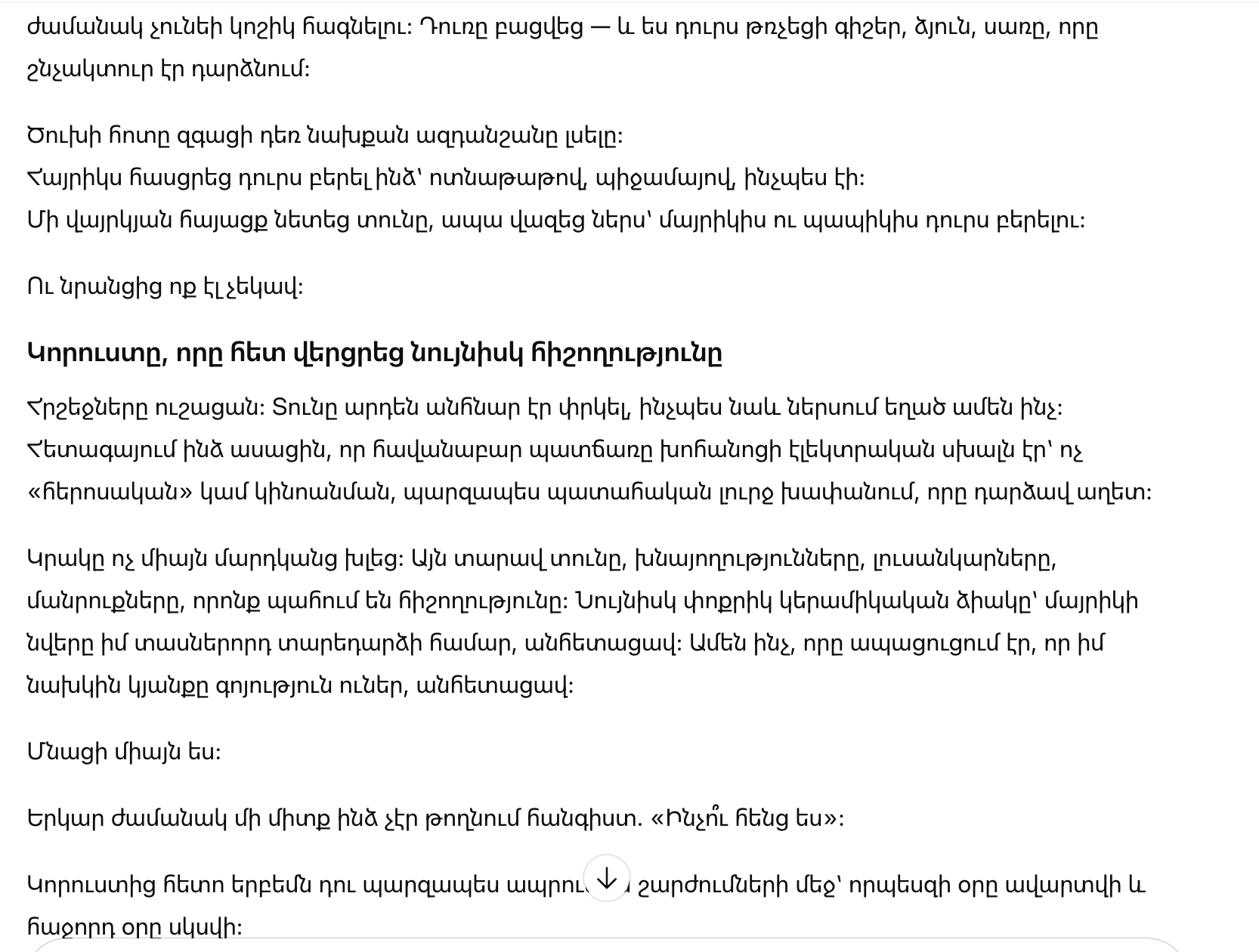 Огонь забрал не только людей. Он забрал дом, накопления, фотографии, мелочи, которые держат память на месте. Даже маленькую керамическую лошадку — подарок мамы на мой десятый день рождения. Исчезло всё, что доказывало: моя прежняя жизнь вообще существовала.