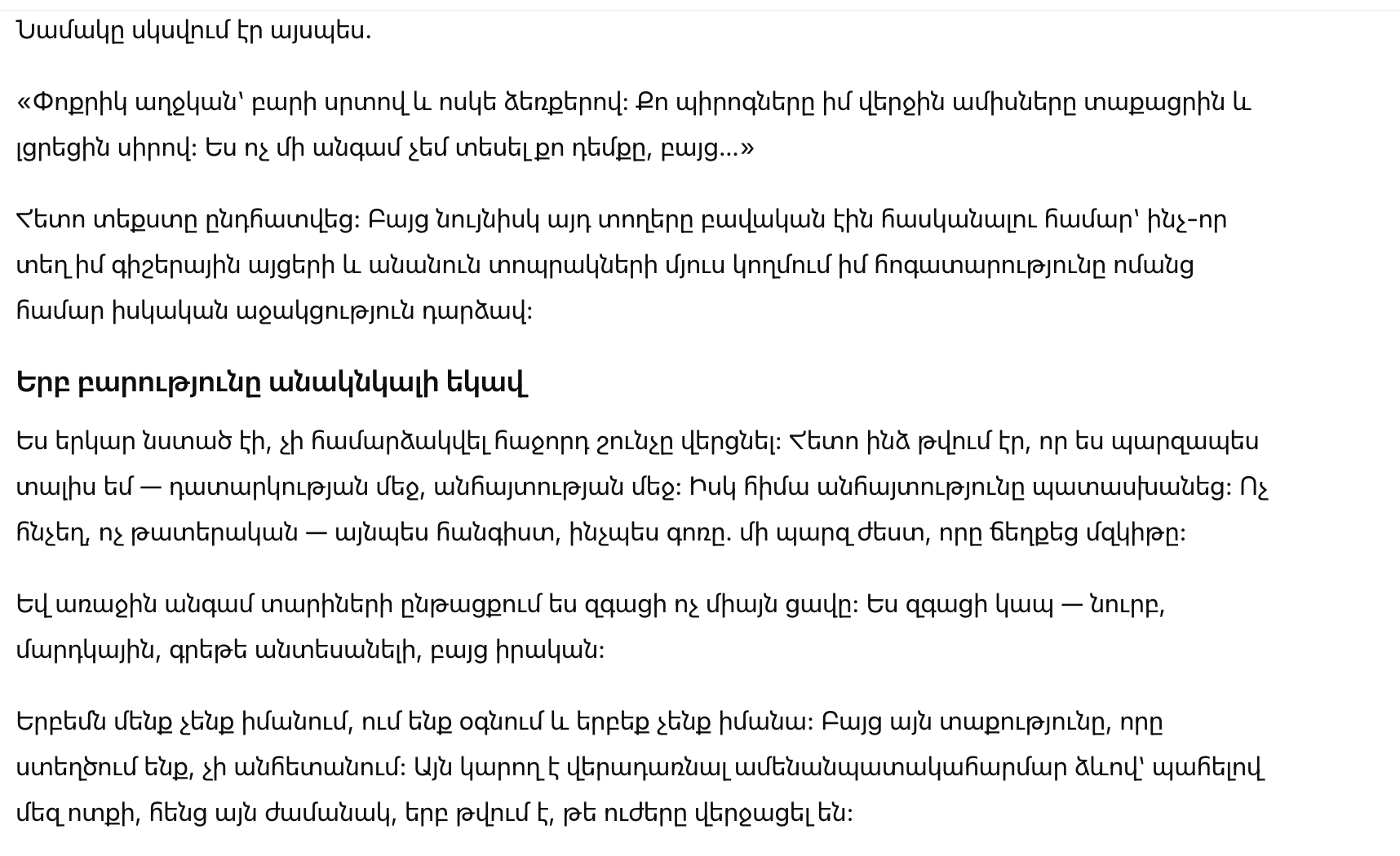 Я долго сидела, не решаясь сделать следующий вдох. До этого мне казалось, что я просто отдаю — в пустоту, в неизвестность. А тут неизвестность вдруг ответила. Не громко, не театрально — а так же тихо, как приходит горе: простым жестом, который пробивает броню.
